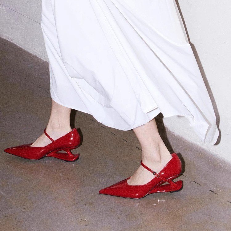 여성을위한 대형 기질 뾰족한 발가락 서스펜션 특수 모양의 힐 메리 제인 하이힐 2025 국경 간 새로운 복고풍 뾰족한 신발