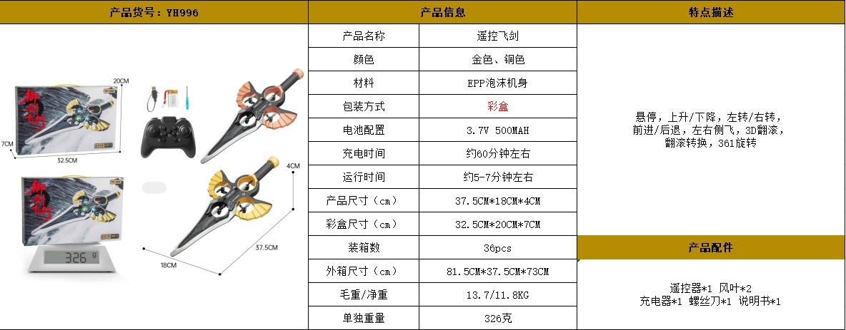 • 황금 손잡이 원격 제어 비행 검 [영어 색상 상자]