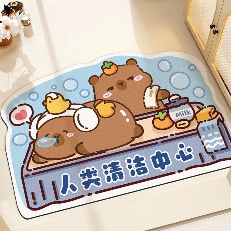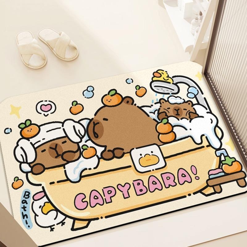 Kapibala 기니피그 욕실 흡수성 바닥 매트, 욕실 얼룩 방지 미끄럼 방지 도어 매트, 내마모성 및 관리 용이 도매스토어 가기