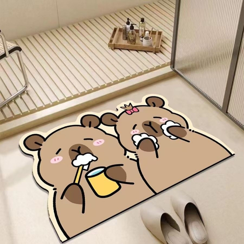 Kapibala 기니피그 욕실 흡수성 바닥 매트, 욕실 얼룩 방지 미끄럼 방지 도어 매트, 내마모성 및 관리 용이 도매
