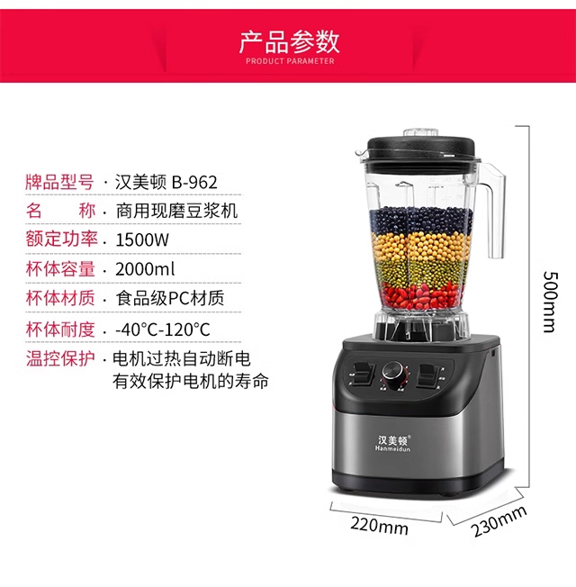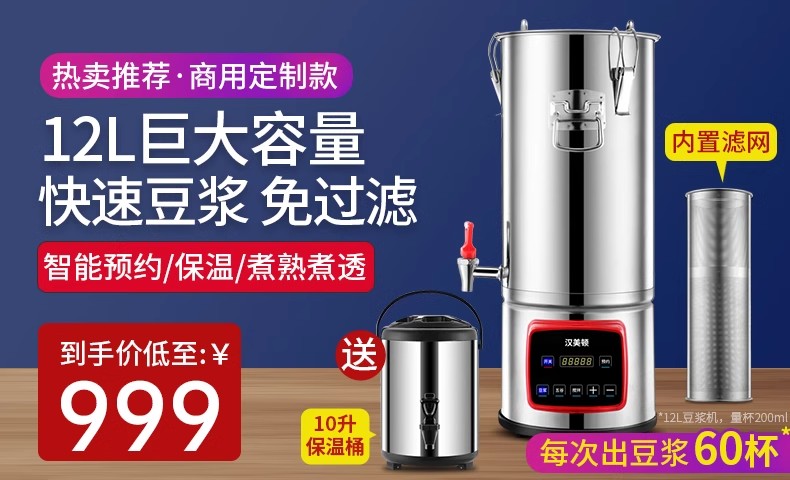 해밀턴 상업용 두유 기계 아침 식사 가게 갓 갈은 가정용 벽 파괴 기계 필터 프리 고출력 대용량 8L스토어 가기