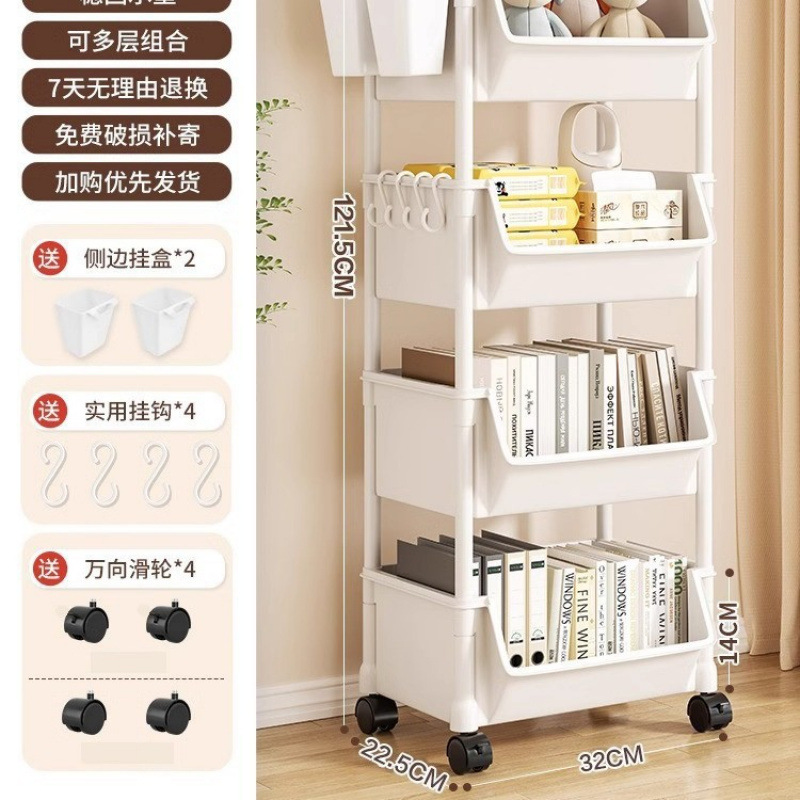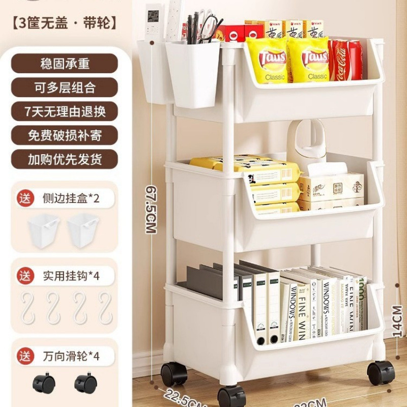 주방 및 욕실용 트롤리 수납 선반, 이동식 스낵 및 욕실, 다층 침대 옆 수납 선반스토어 가기