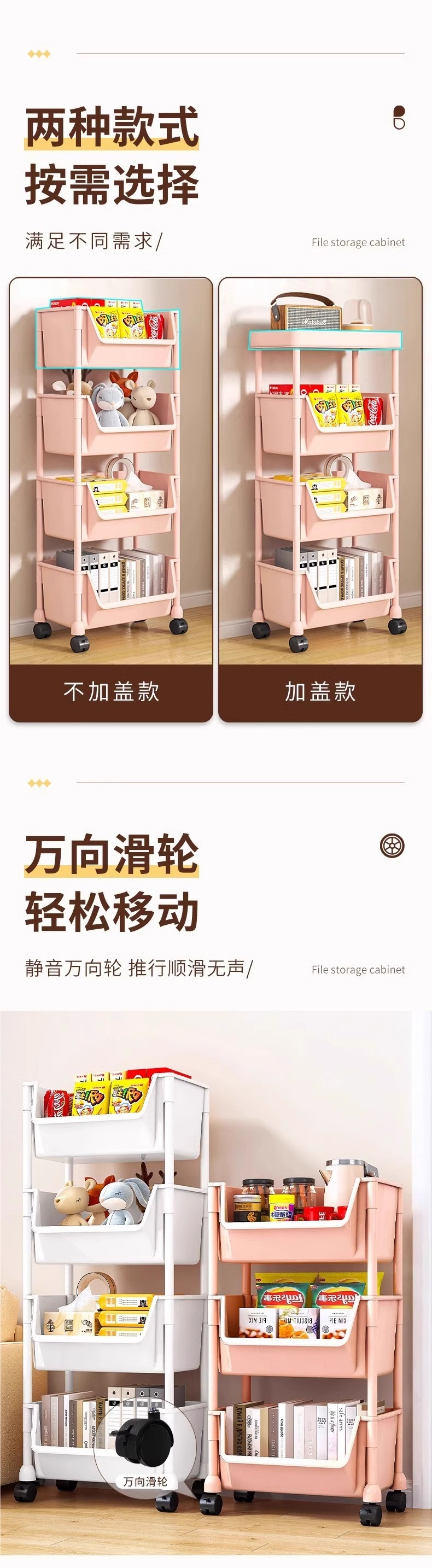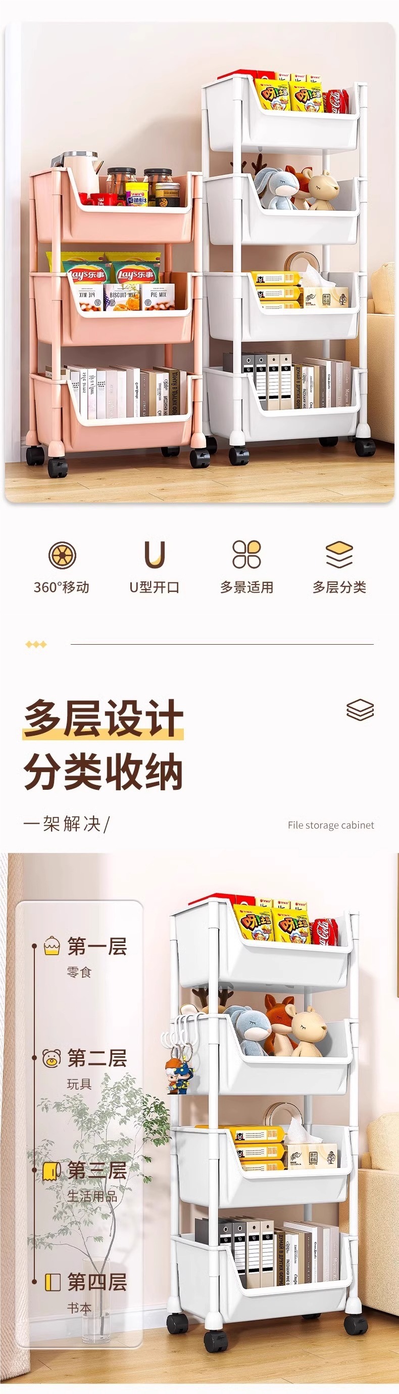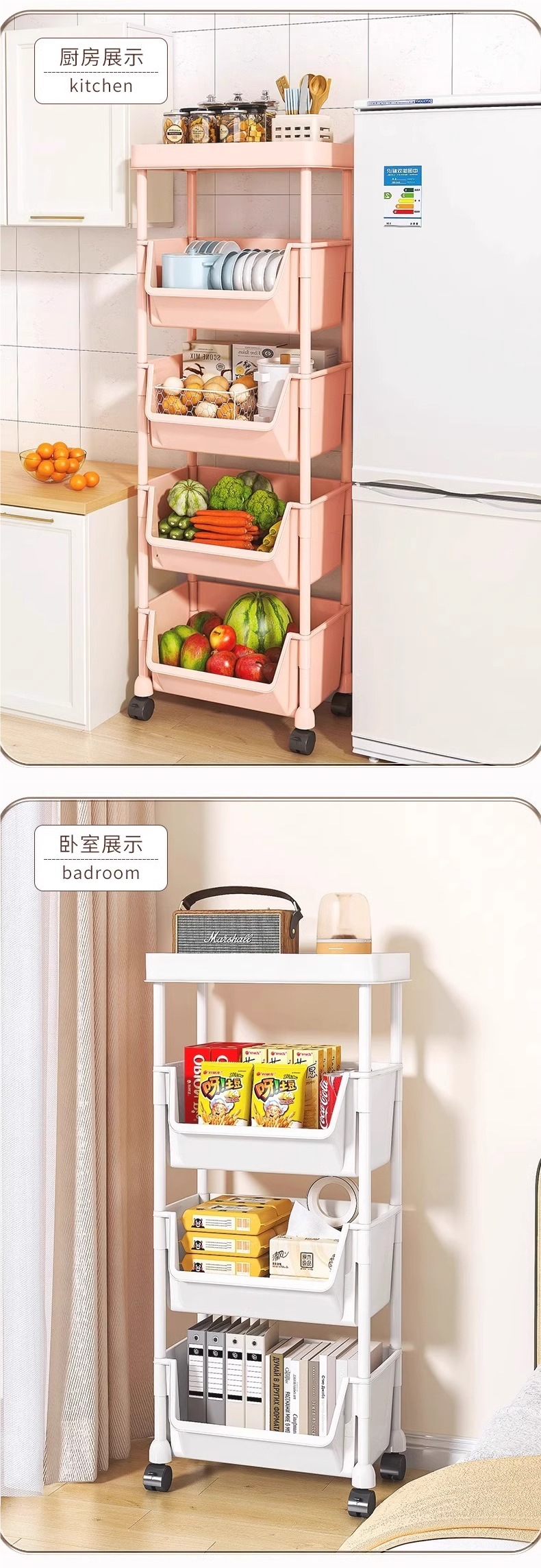 주방 및 욕실용 트롤리 수납 선반, 이동식 스낵 및 욕실, 다층 침대 옆 수납 선반