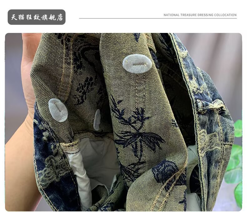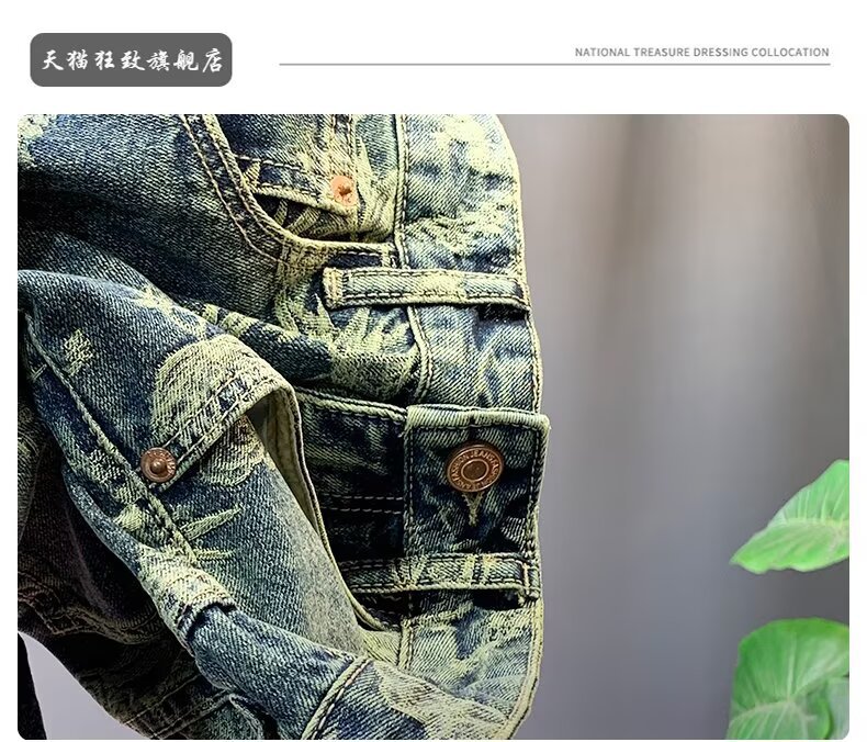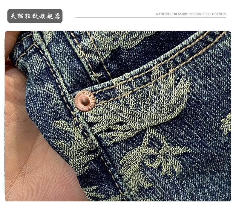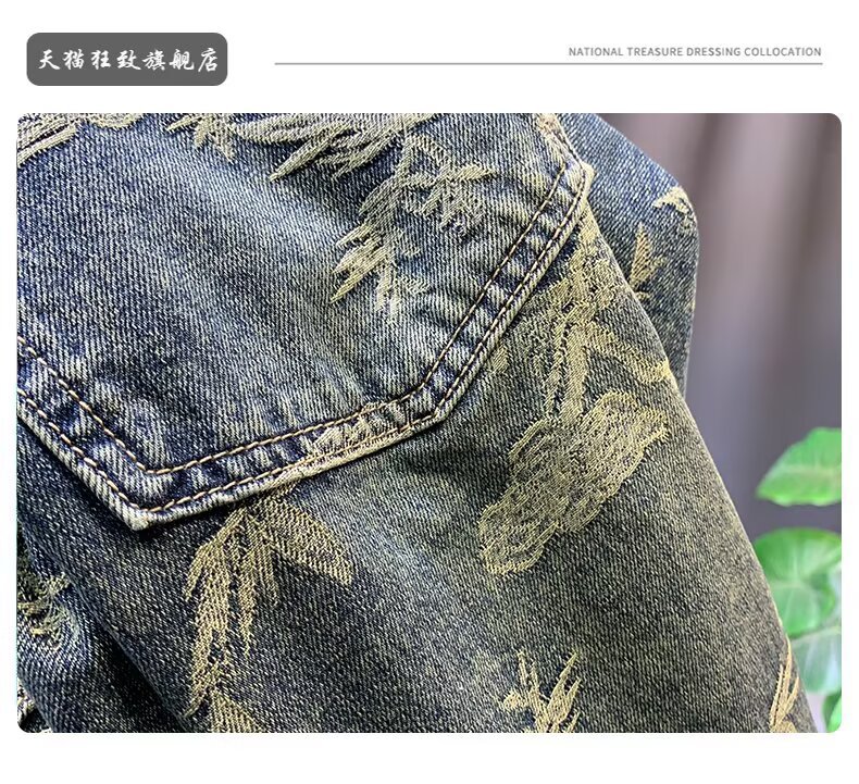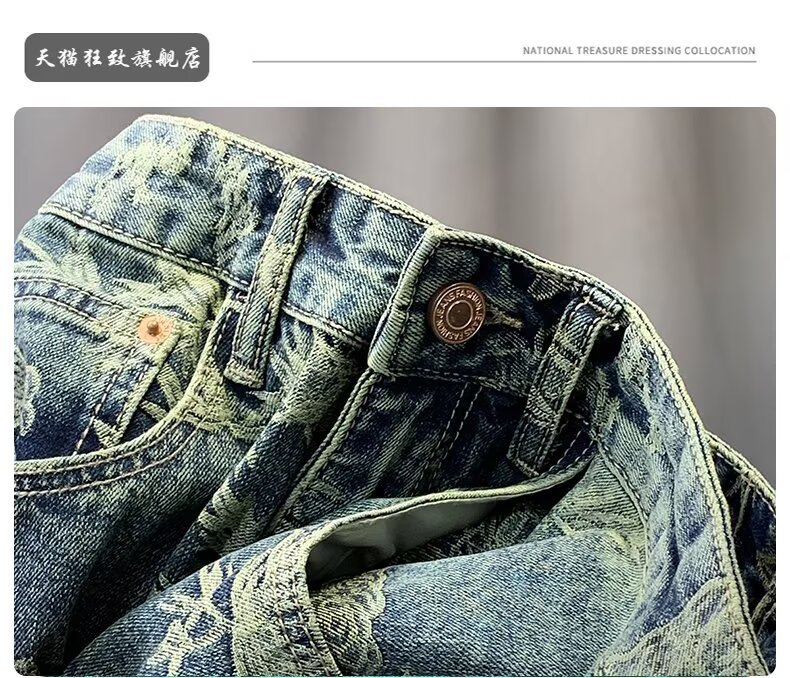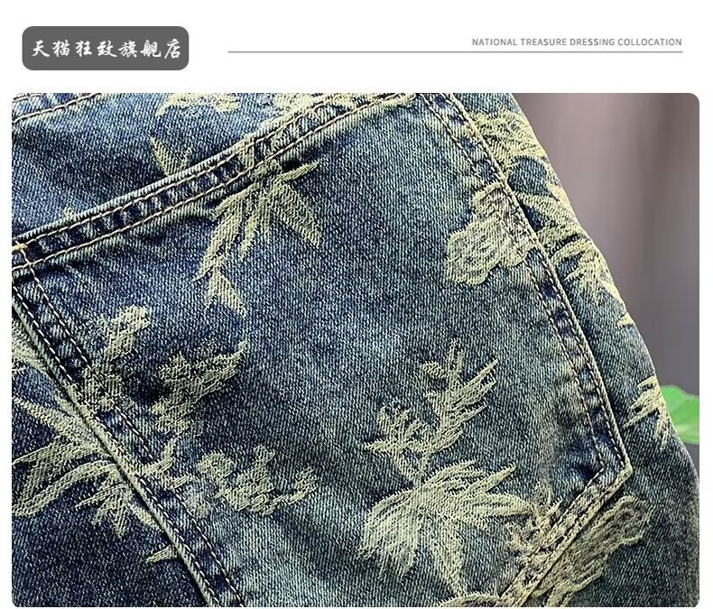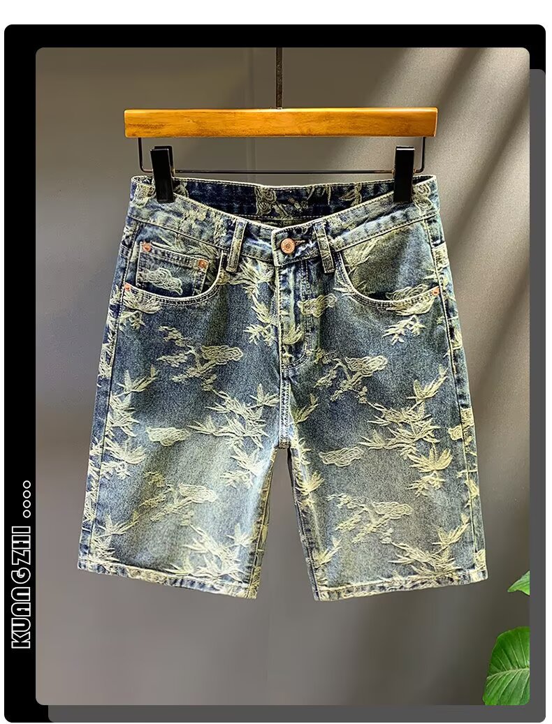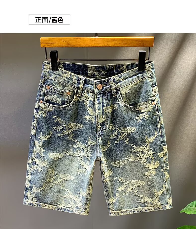 자카드 데님 반바지 블루 디자인 중국 스타일 스트레이트 레그 5부 팬츠 트렌디한 미드팬츠 트렌디 브랜드 캐주얼 5부 팬츠 남성용스토어 가기