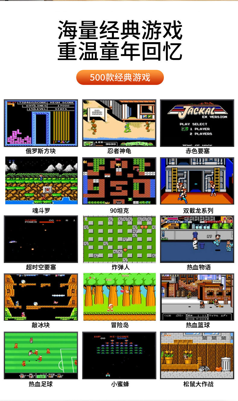 휴대용 신형 클래식 게임기 남녀 공용 어린 시절 추억 이인용 충전 고급 레트로 버전 휴대용 게임기 화면 프로젝션