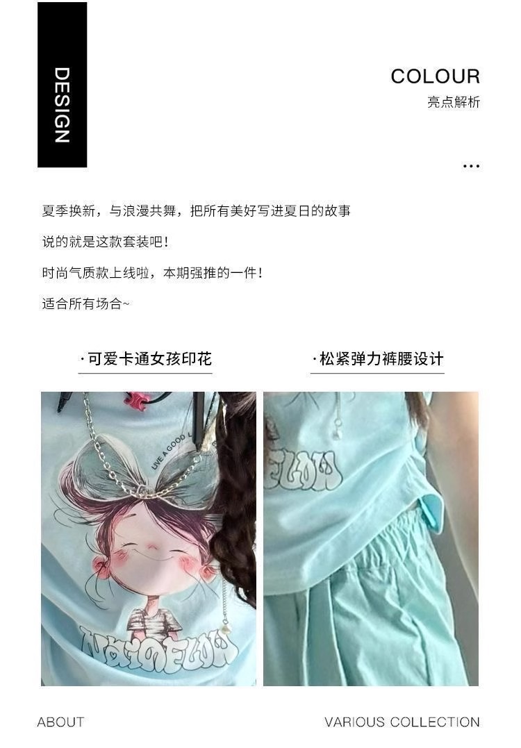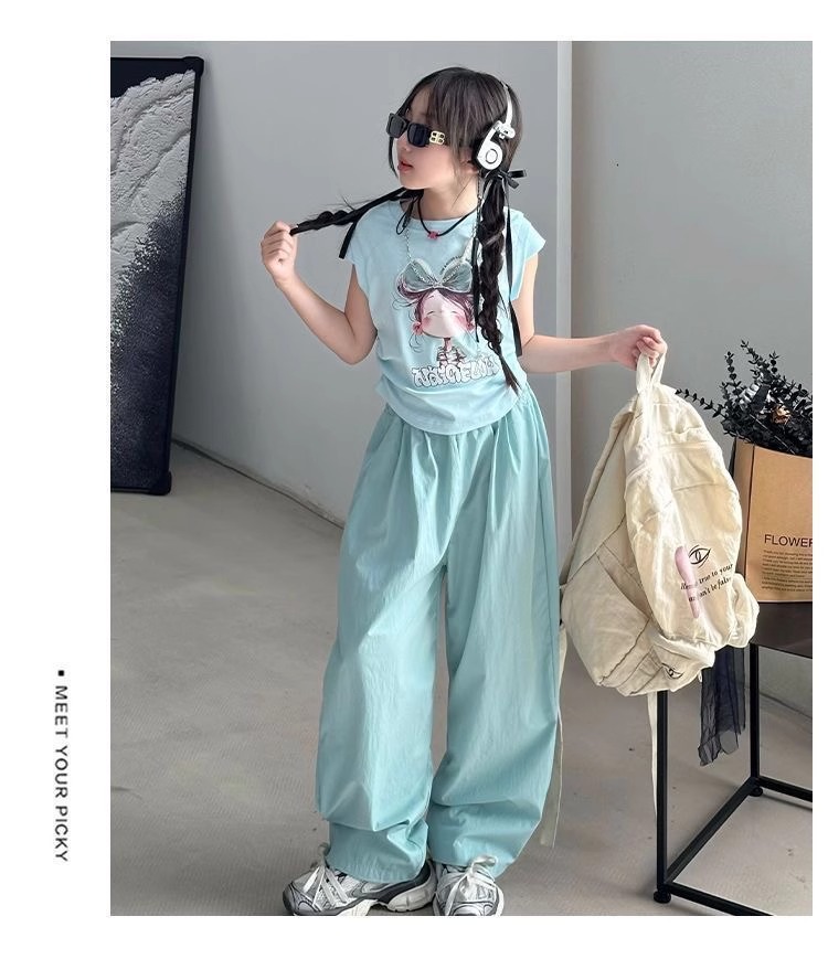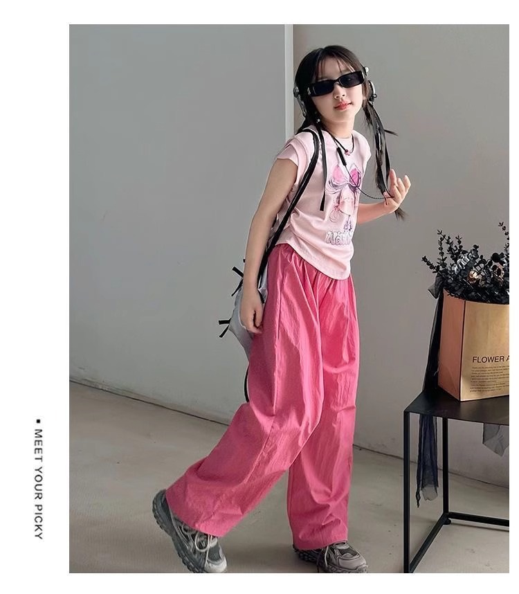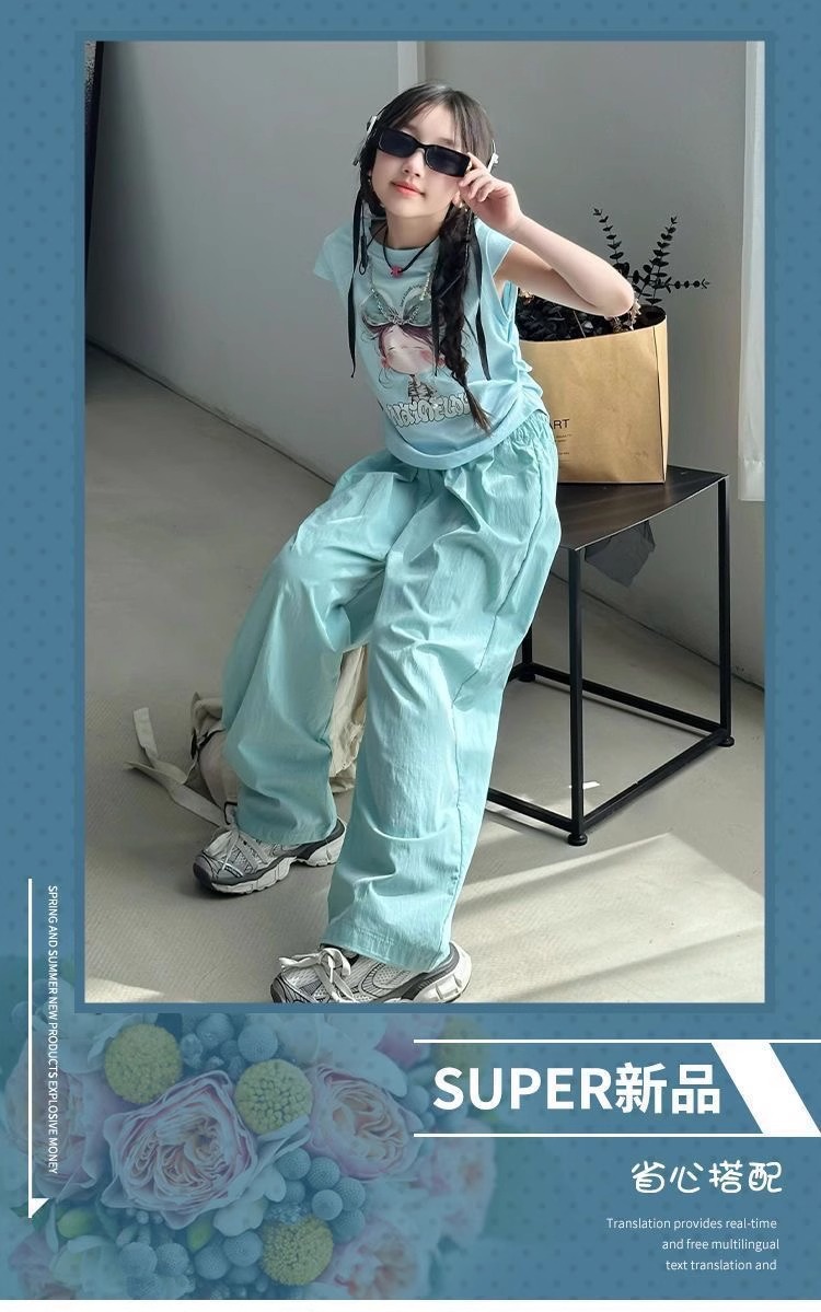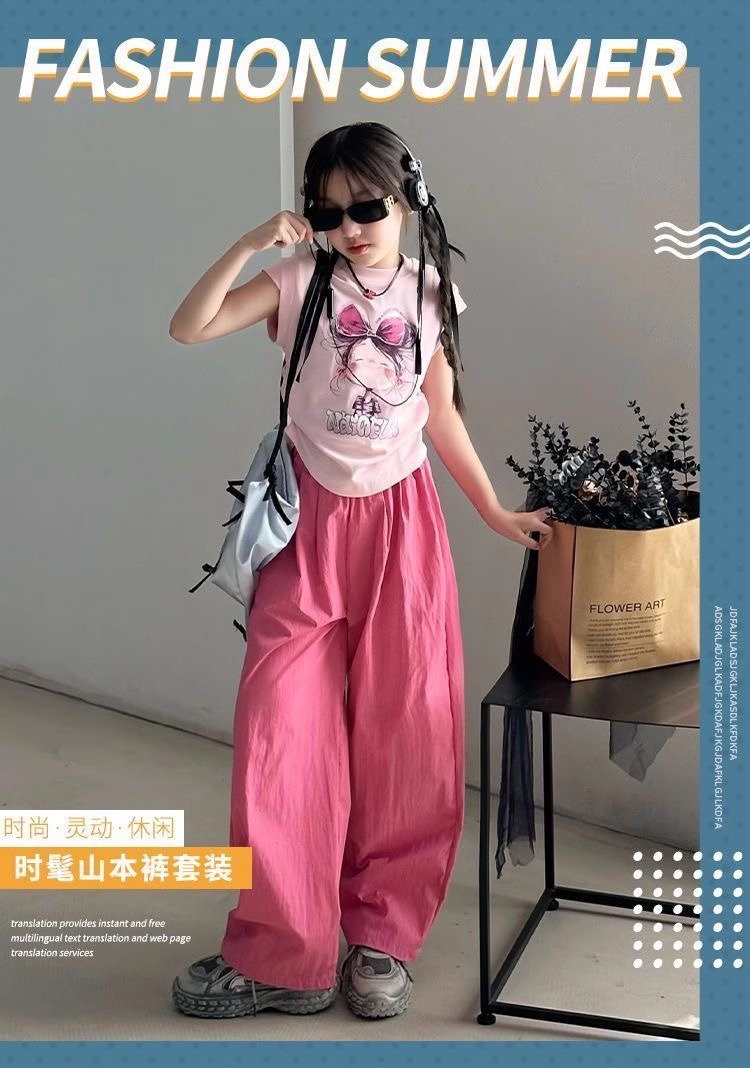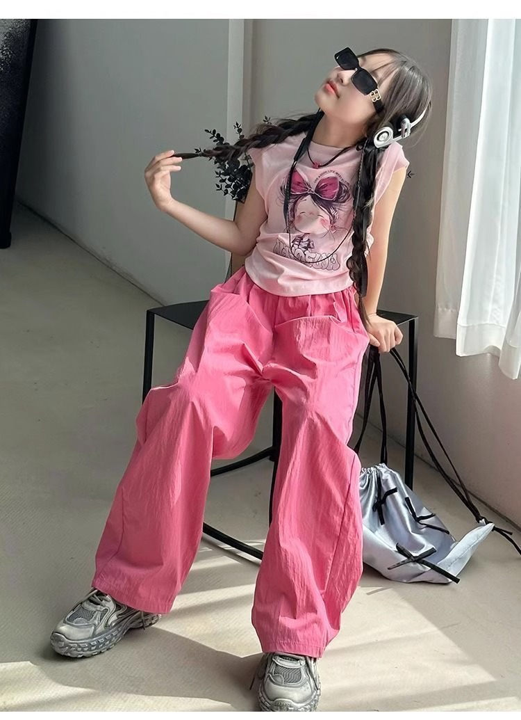 여아 한국식 와이드 팬츠 티셔츠 세트 큰 어린이 여름 신작 솔리드 컬러 도파민 스타일 캐주얼 반팔 여름스토어 가기