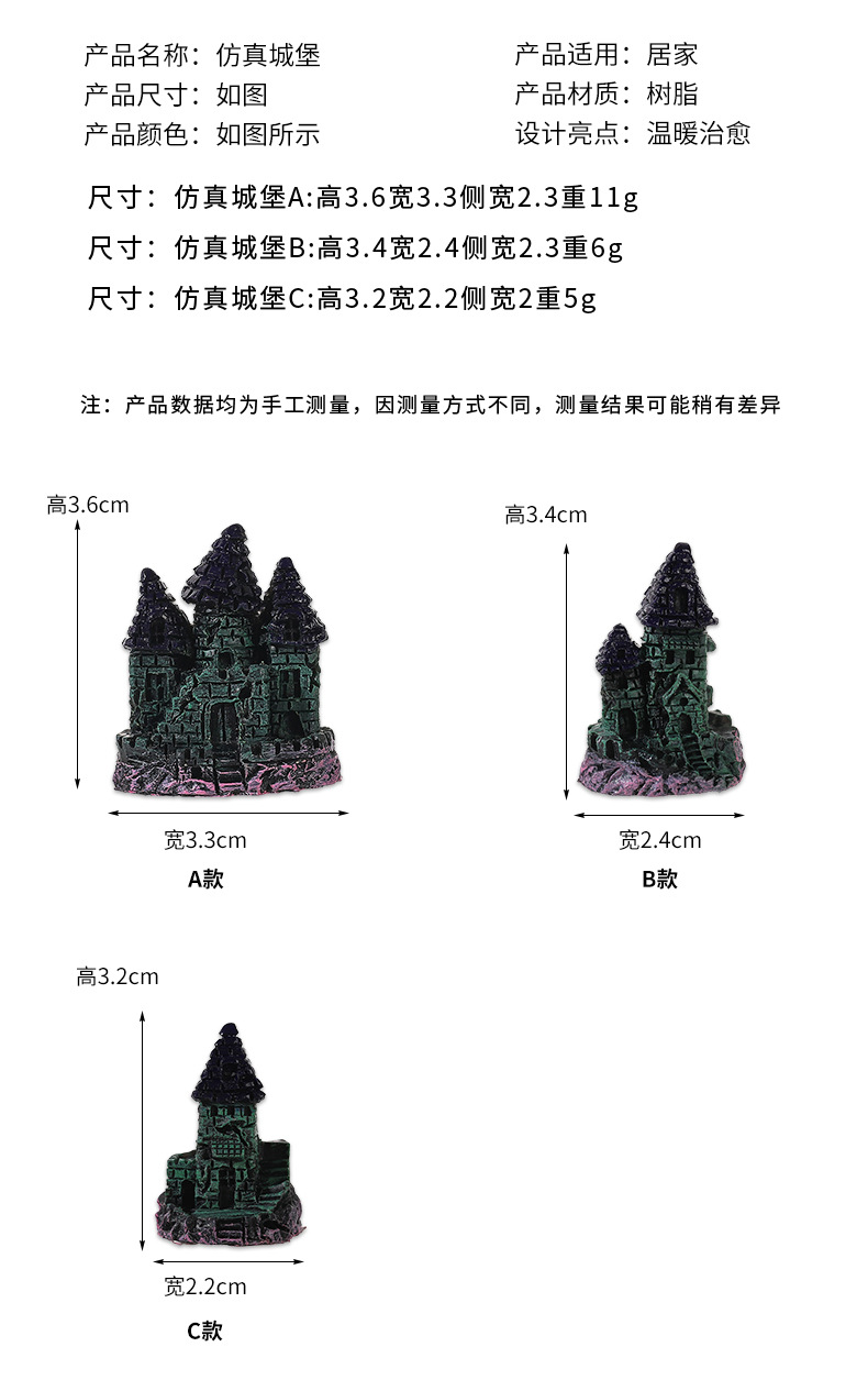 수족관 수조 조경 장식 성 수지 공예 강 골동품 성 시뮬레이션 유럽 스타일의 작은 성