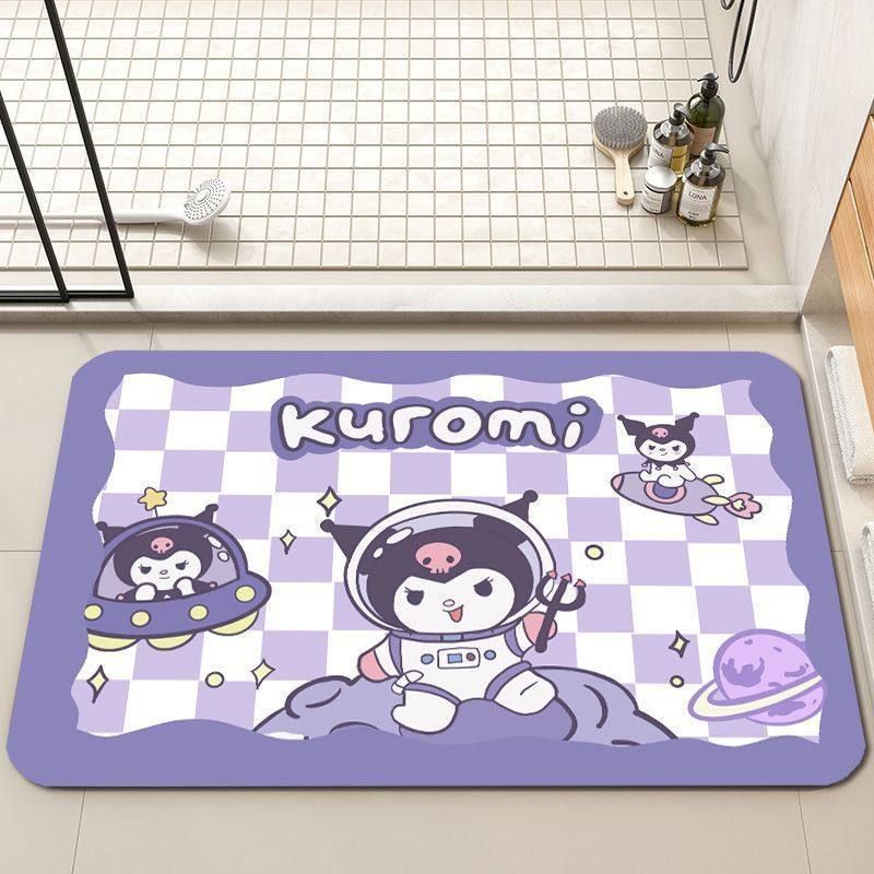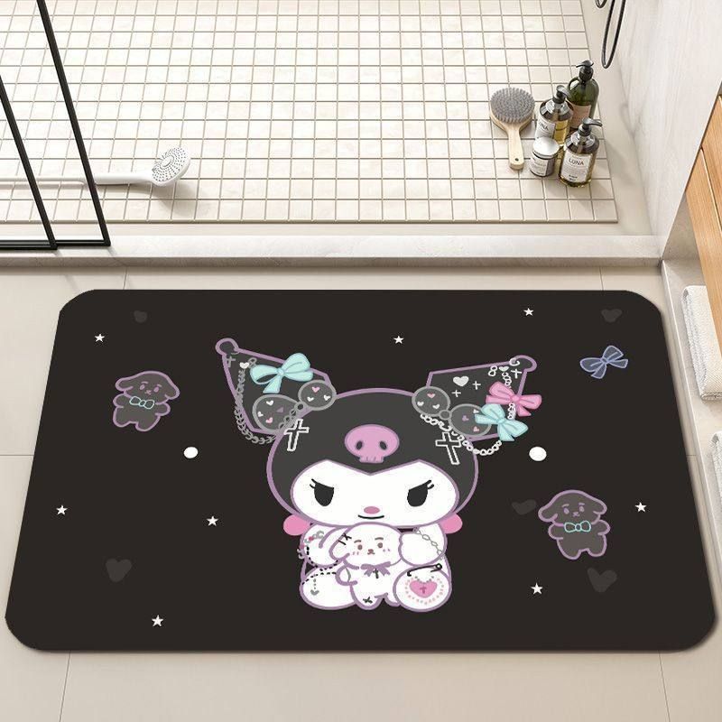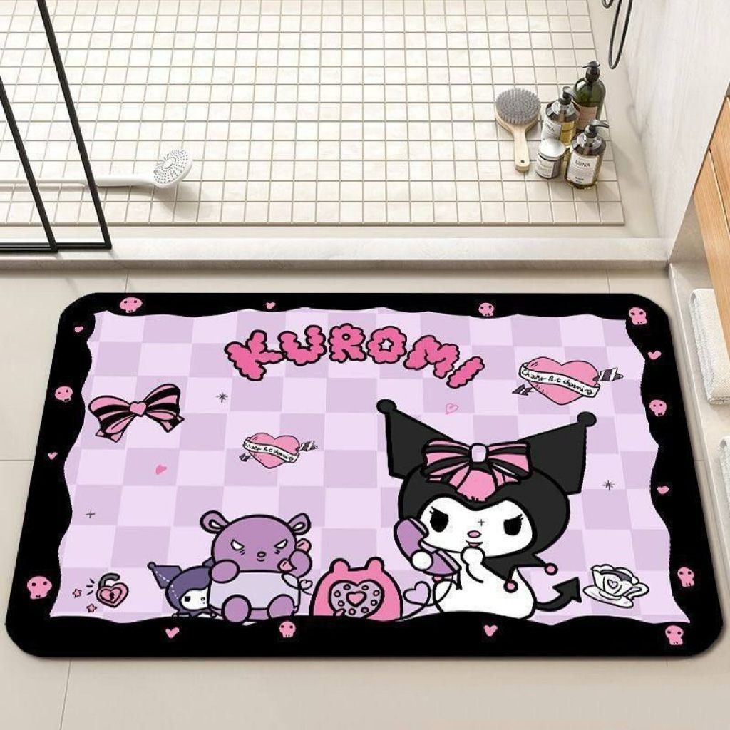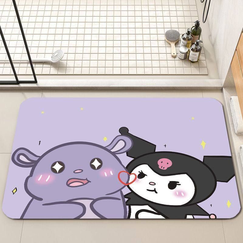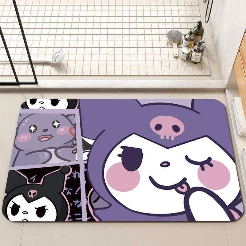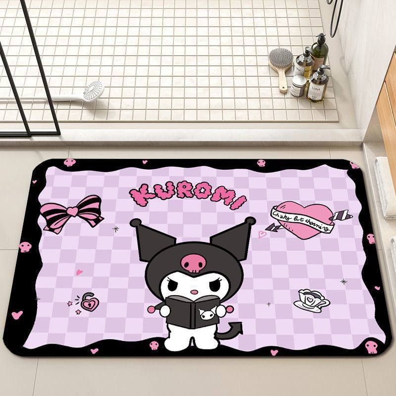 Kuromi 만화 욕실 바닥 매트, 욕실 욕조 흡수성 발 매트, 귀여운 방 장식 도어 매트, 도매 재고 있음스토어 가기