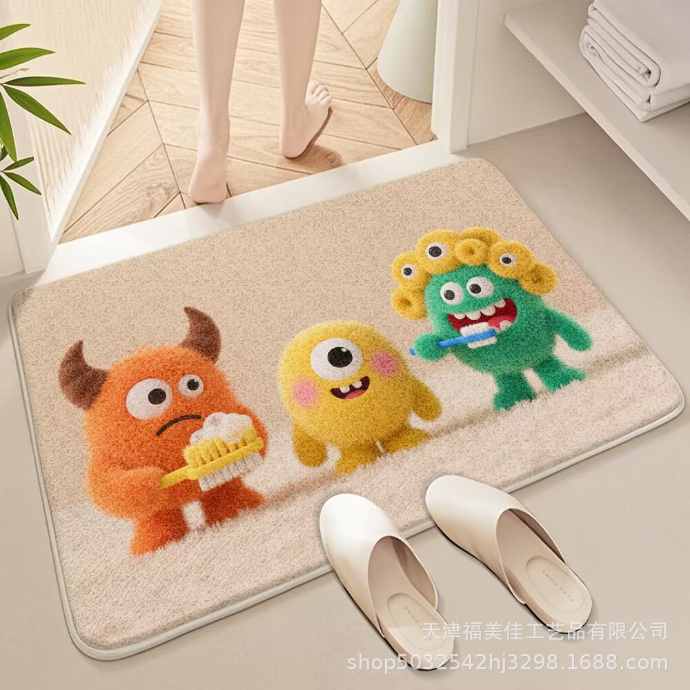 만화 모조 캐시미어 바닥 매트, 플러시 피부 친화적인 카펫, 입체 현관 문 매트, 욕실 흡수 매트, 배송 가능스토어 가기