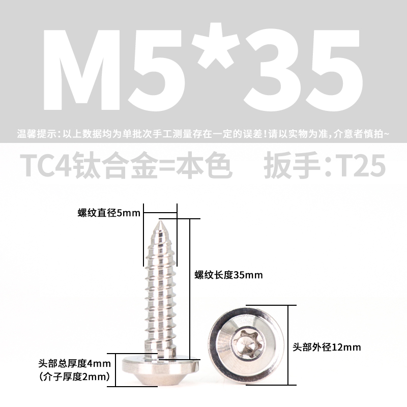 TC4-티타늄 합금 비행 접시 헤드 내부 매화 자동 태핑 나사 오토바이 장식 자동 태핑 대형 헤드 수정 나사스토어 가기