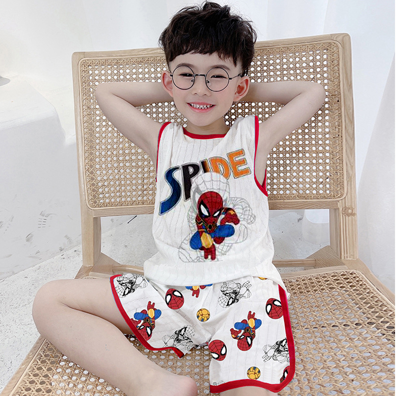 소년 잠옷 조끼 여름 순수 코튼 스파이더 맨 어린이 에어컨 옷 얇은 소년 면화 실크 아기 여름 민소매