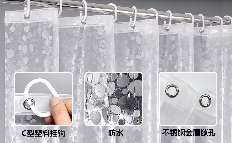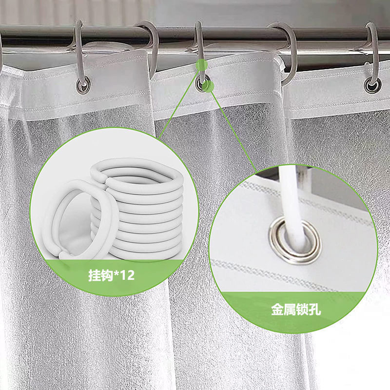 구멍이 없는 욕실 샤워 커튼, 방수 및 곰팡이 방지 욕실, 투광성, 따뜻하고 두꺼운 투명 칸막이 커튼, 교수형 커튼스토어 가기