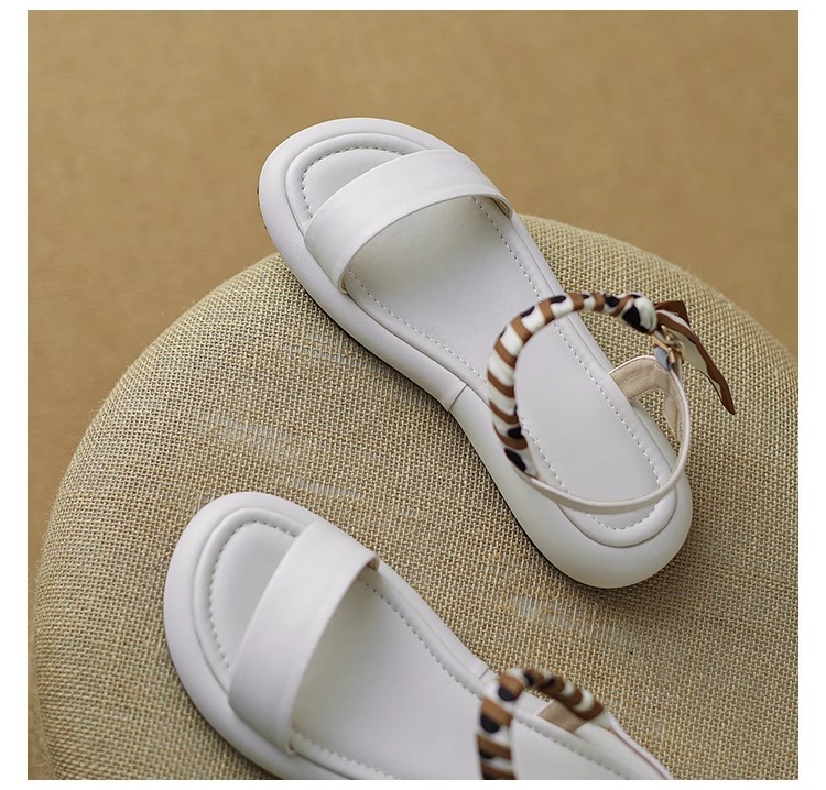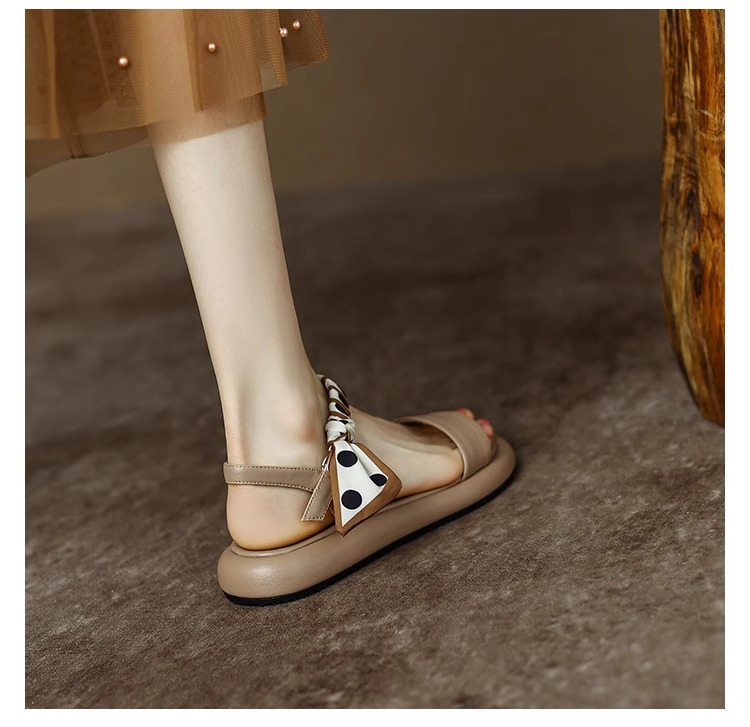 너무 예뻐요~ 여성용 소프트 가죽 오픈토 샌들 2025 여름 두꺼운 밑창 다용도 비치 슈즈 로마 슈즈스토어 가기