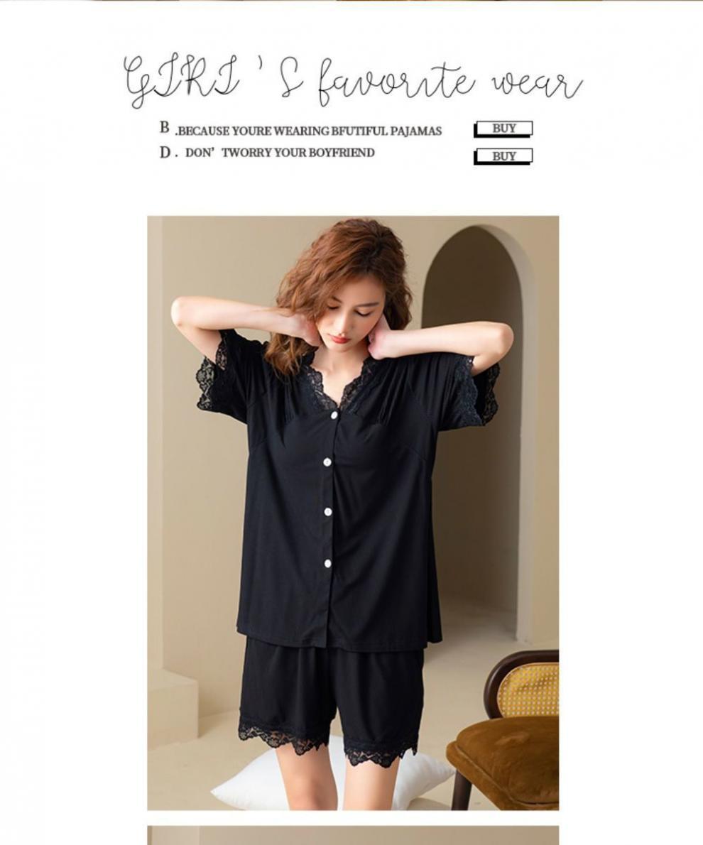 1.0-150kg 아이스 실크 플러스 사이즈 잠옷 여성 여름 투피스 얇은 카디건 반소매 반바지는 집 밖에서 착용 가능스토어 가기