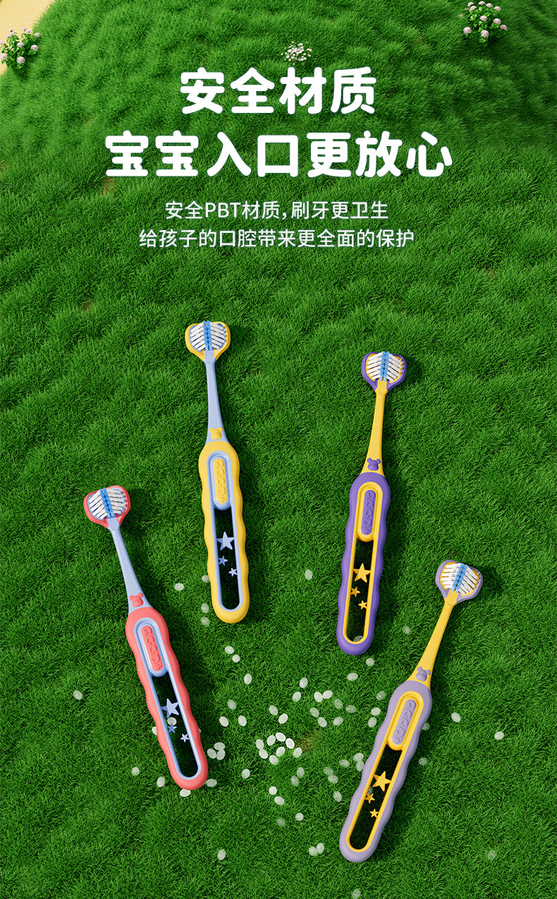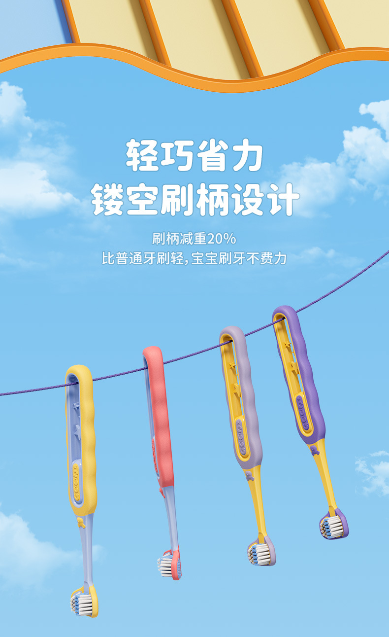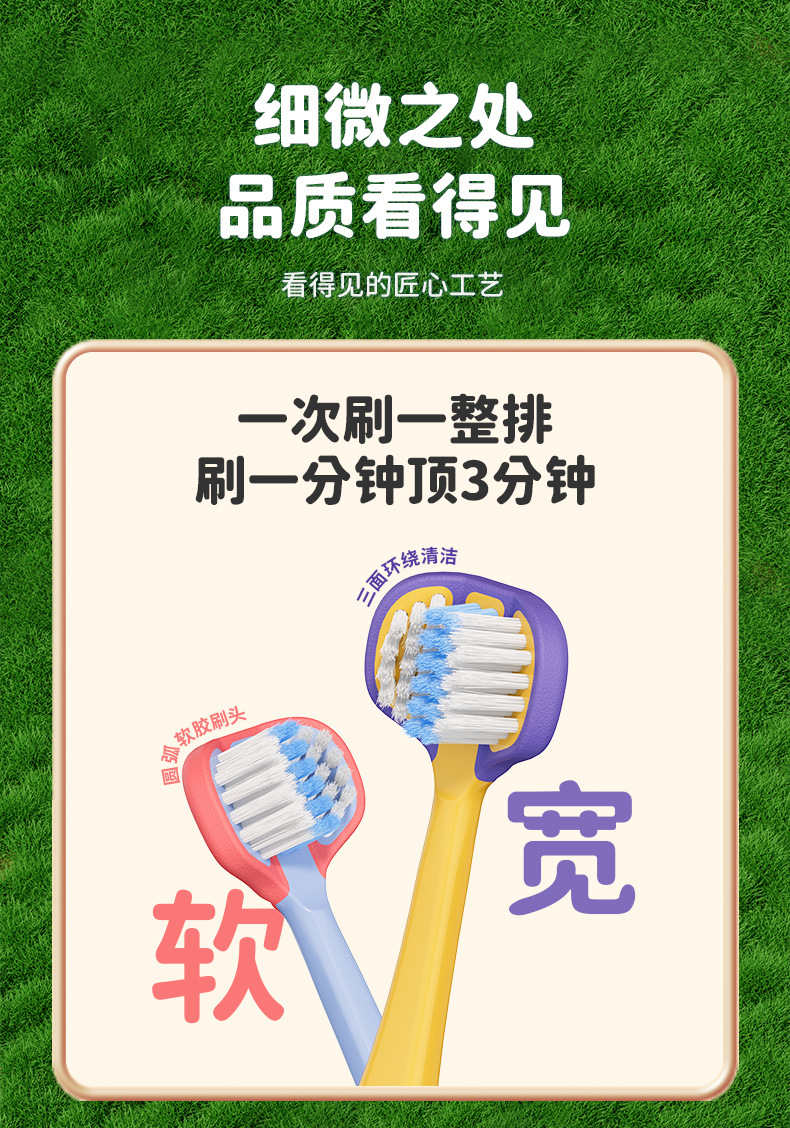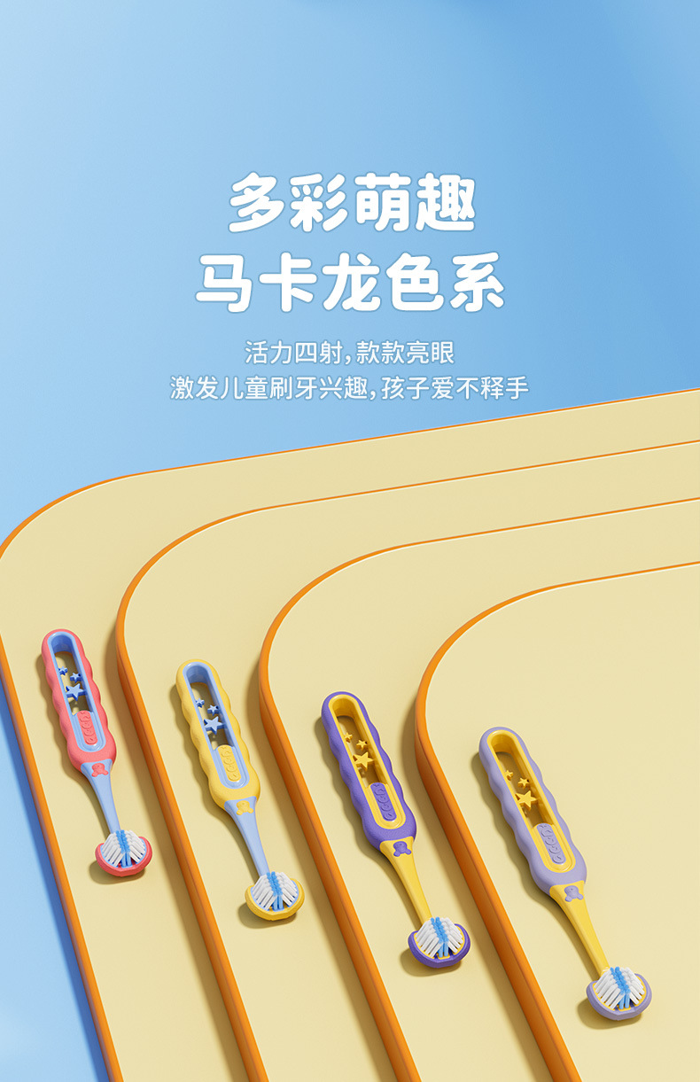 [직송] 3~12세 어린이용 3면 칫솔 2팩, 고급 부드러운 모 3헤드 어린이용 칫솔 제조업체에 적합스토어 가기