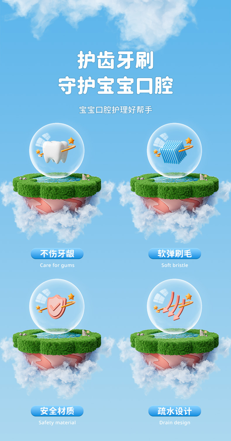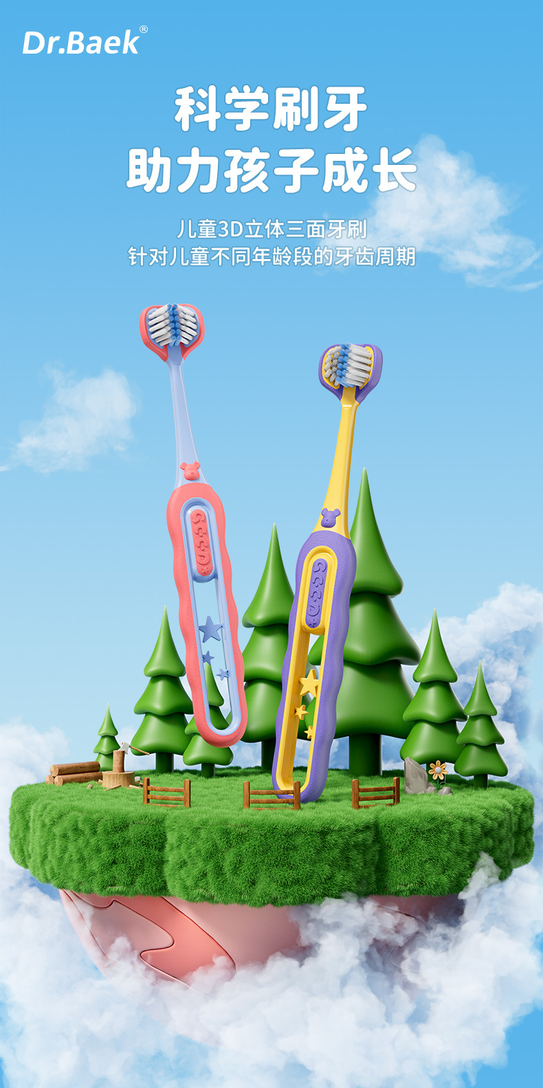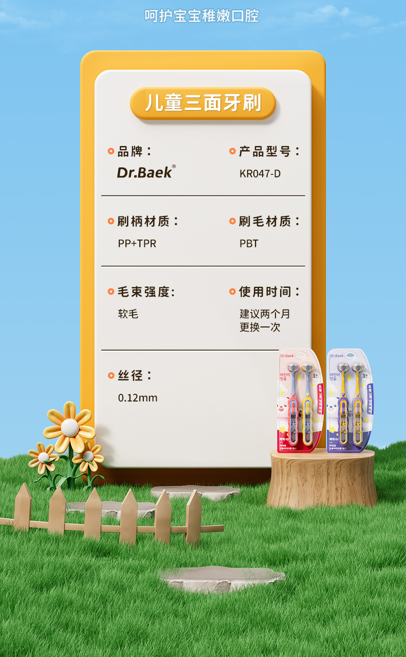 [직송] 3~12세 어린이용 3면 칫솔 2팩, 고급 부드러운 모 3헤드 어린이용 칫솔 제조업체에 적합스토어 가기