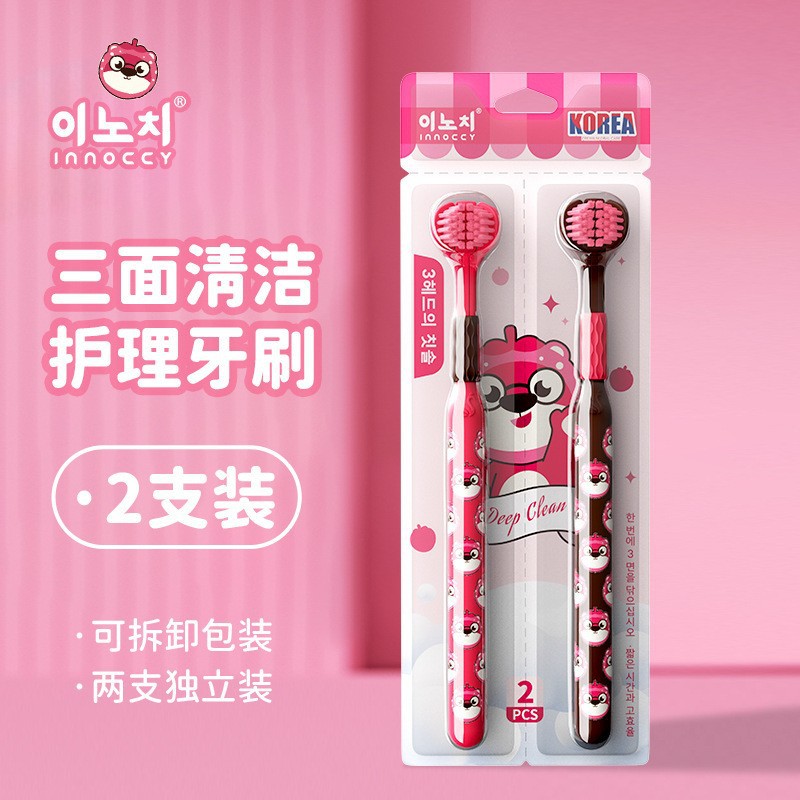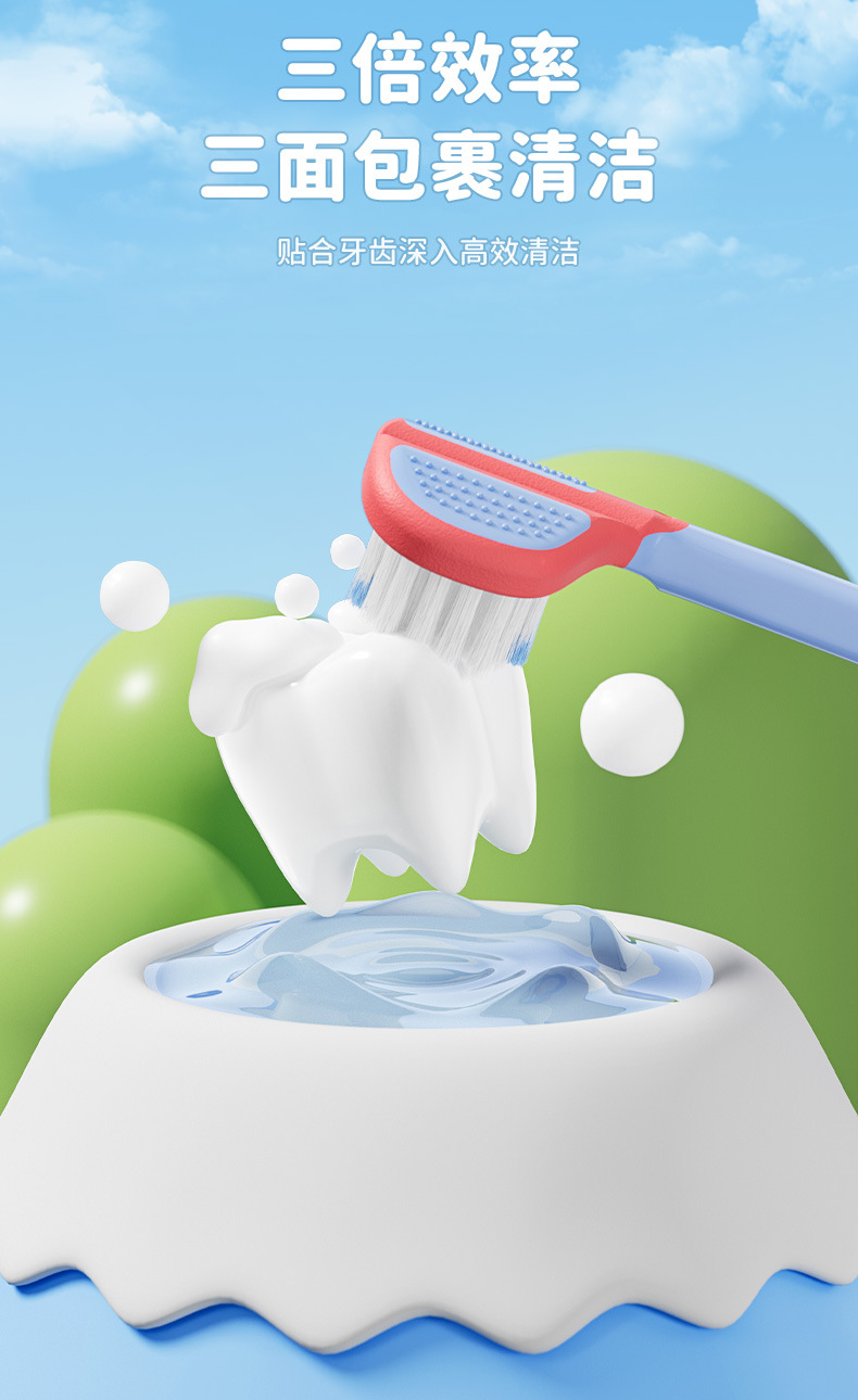[직송] 3~12세 어린이용 3면 칫솔 2팩, 고급 부드러운 모 3헤드 어린이용 칫솔 제조업체에 적합