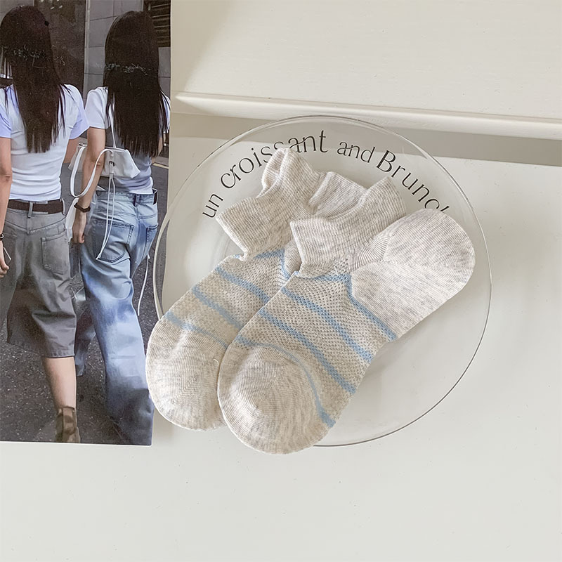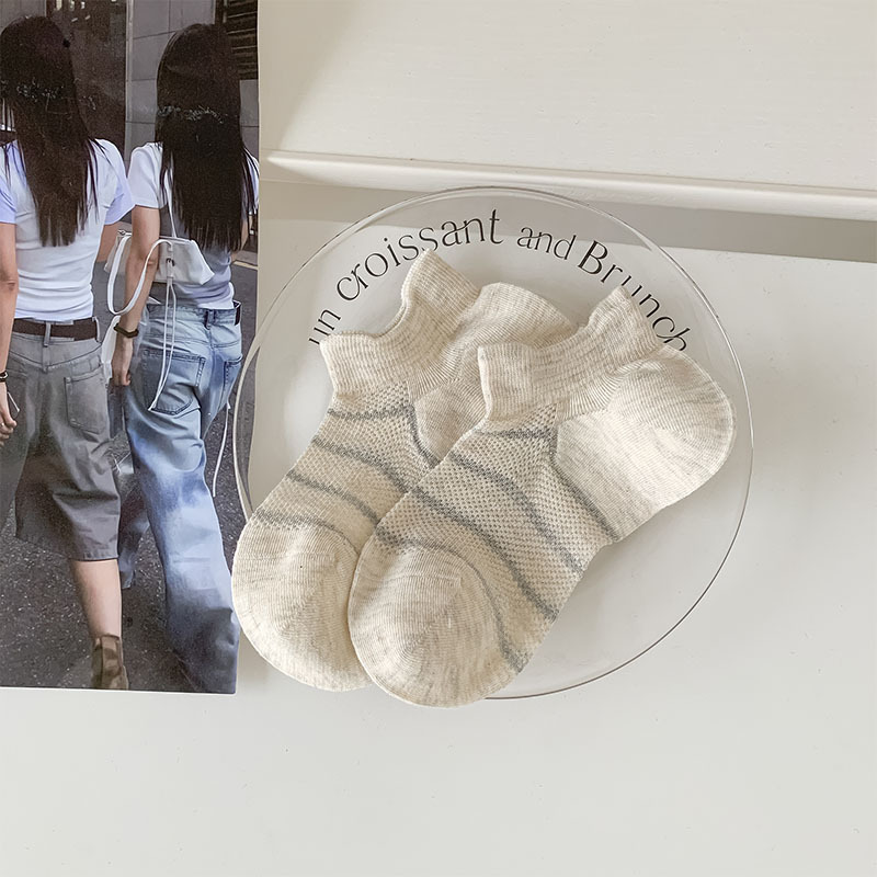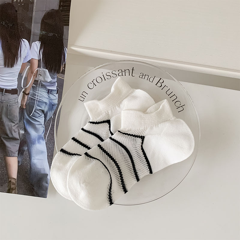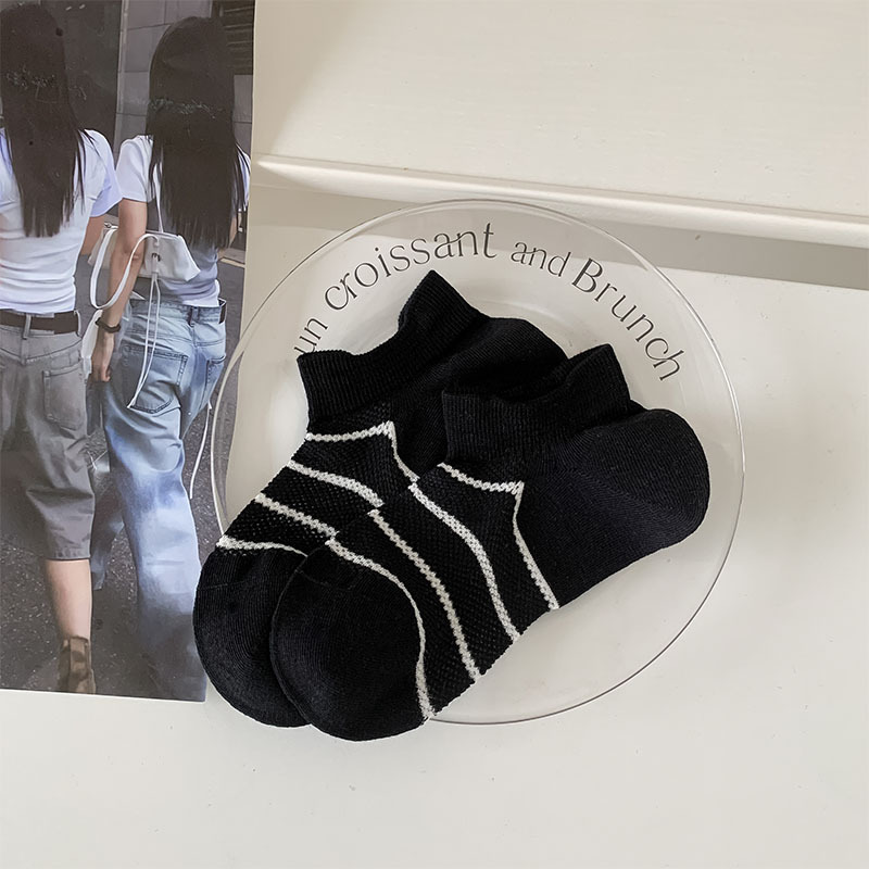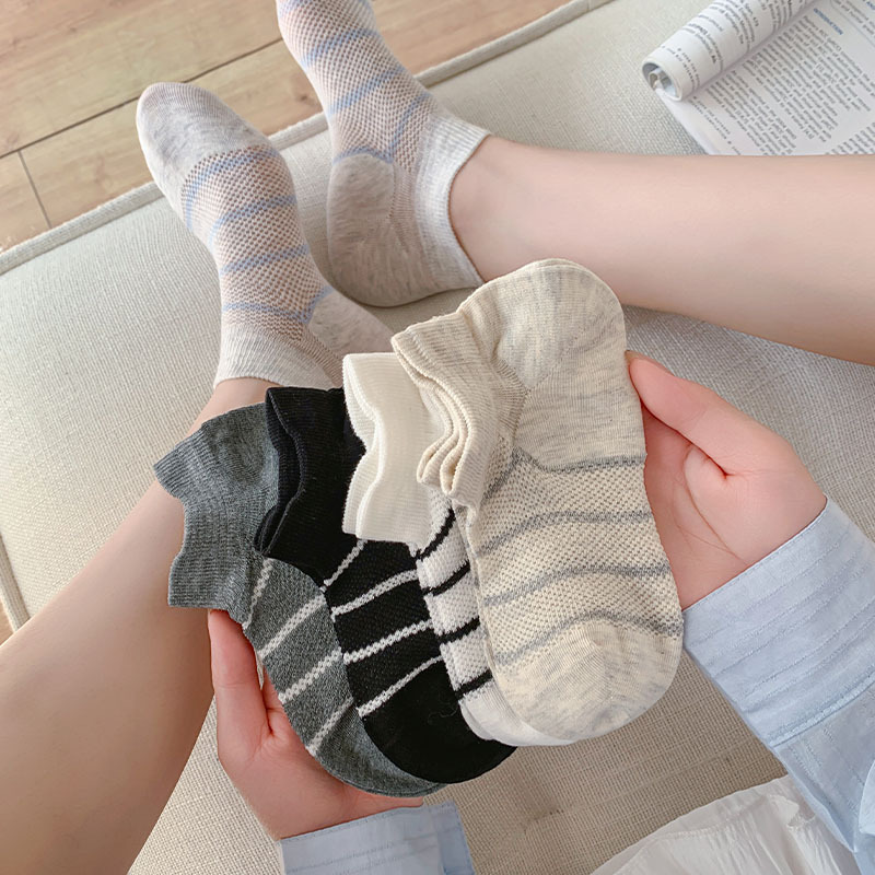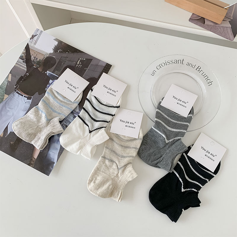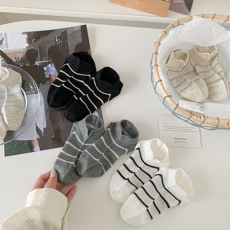 여름 얇은 로우탑 얕은 입이 떨어지지 않는 여성용 짧은 양말 한국 스타일 심플 블랙 그레이 스트라이프 대비 색상 학생 캐주얼 양말스토어 가기