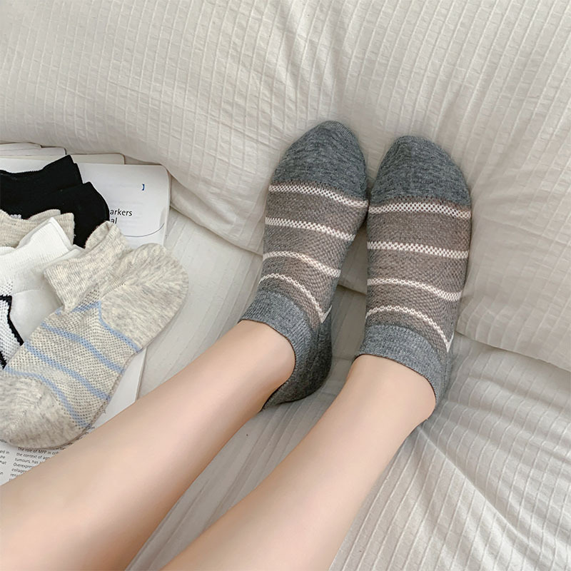 여름 얇은 로우탑 얕은 입이 떨어지지 않는 여성용 짧은 양말 한국 스타일 심플 블랙 그레이 스트라이프 대비 색상 학생 캐주얼 양말