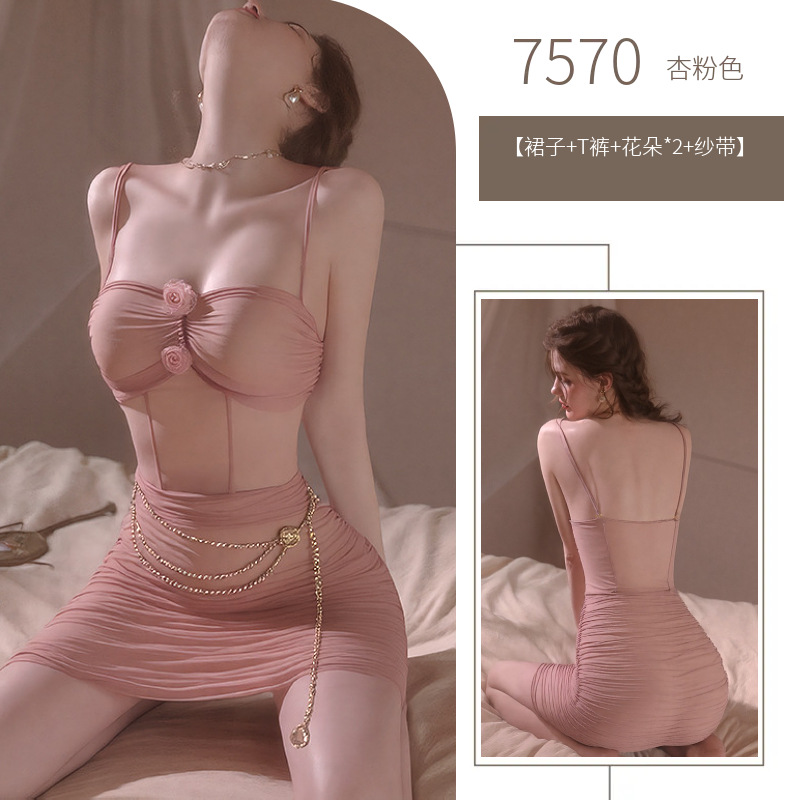 야바키 섹시 속옷, 시스루 백탑, 섹시 타이트 힙 커버 잠옷, 시스루 유혹 푸쉬업 서스펜더 스커트 7570