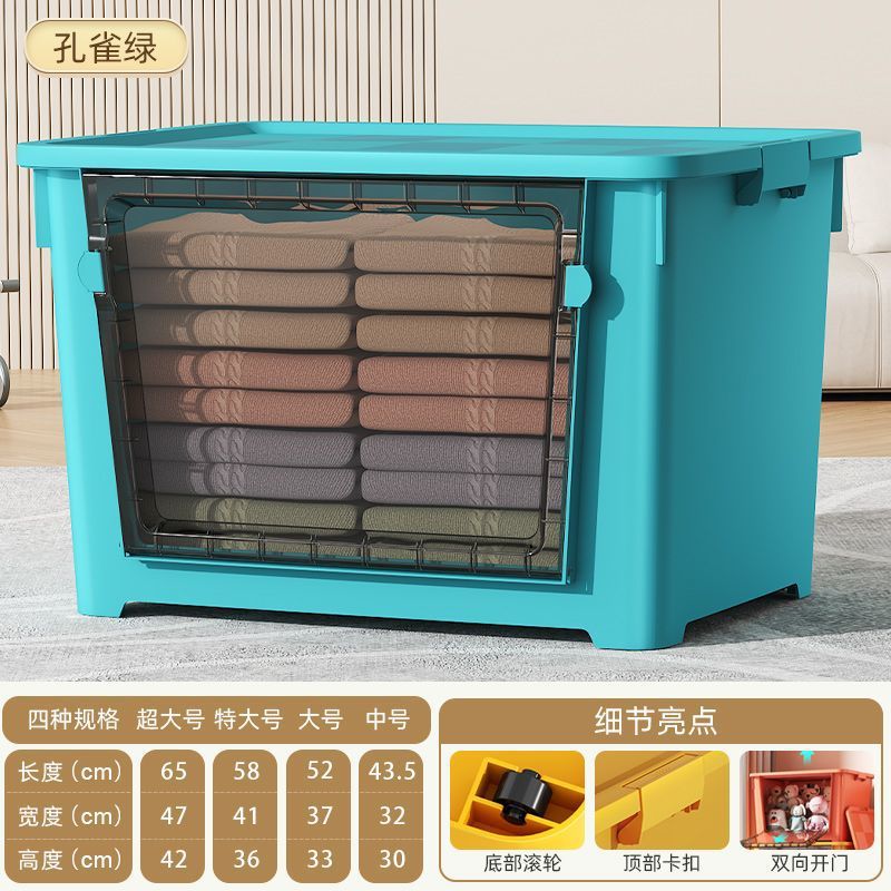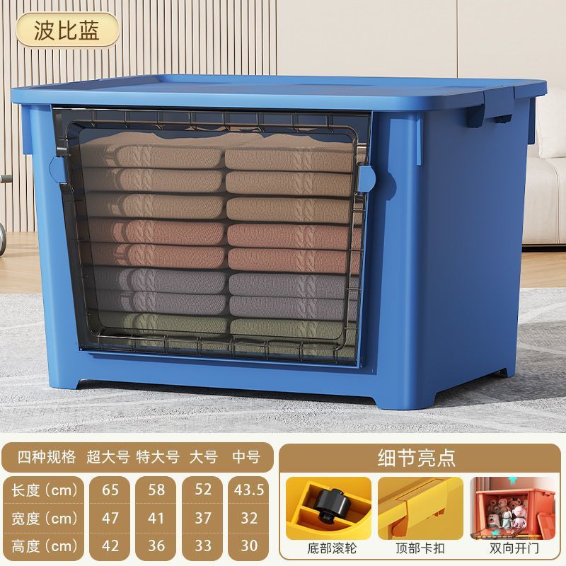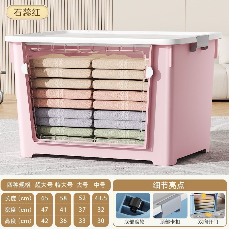 전면 개방형 의류 보관 상자 투명 가정용 플라스틱 보관 캐비닛 어린이 보관 상자 장난감 정리 상자