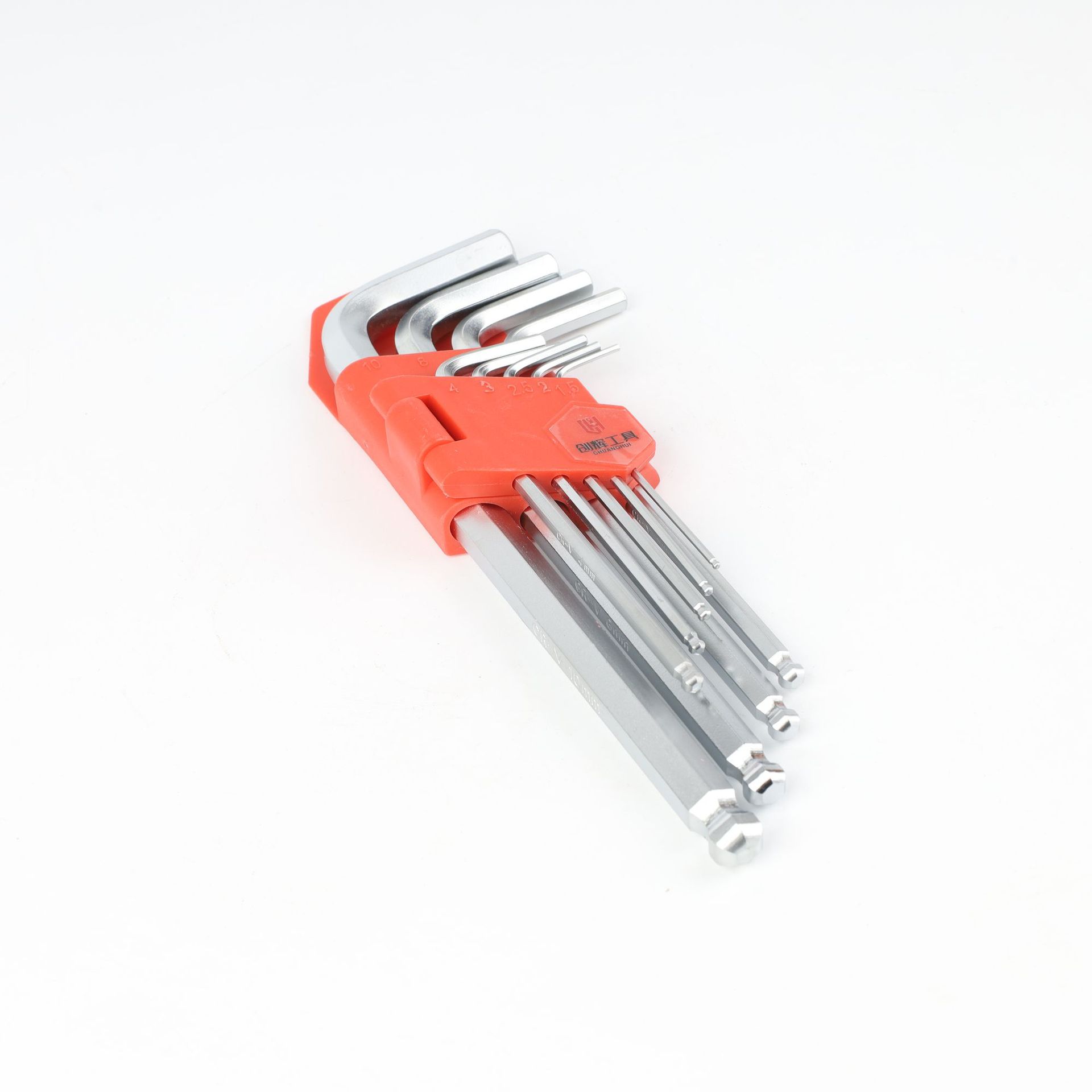 제조 업체 도매 니켈 도금 매트 육각 소켓 세트 L 자형 육각 소켓 볼 헤드 육각 렌치 도구 9PC 볼 헤드