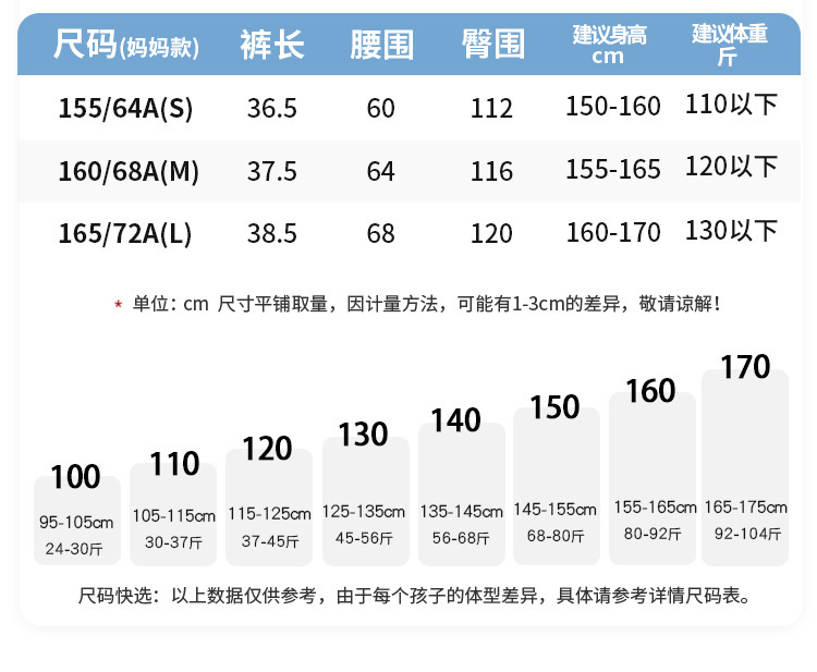 • 엄마 사이즈 S 권장 체중은 55kg 이내입니다.
