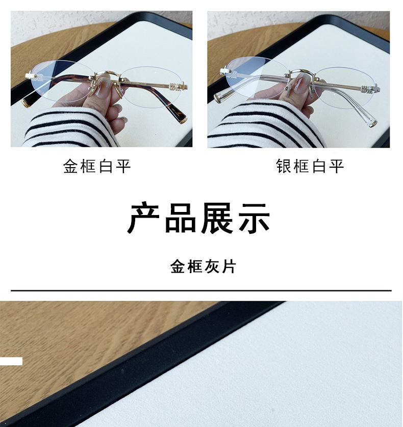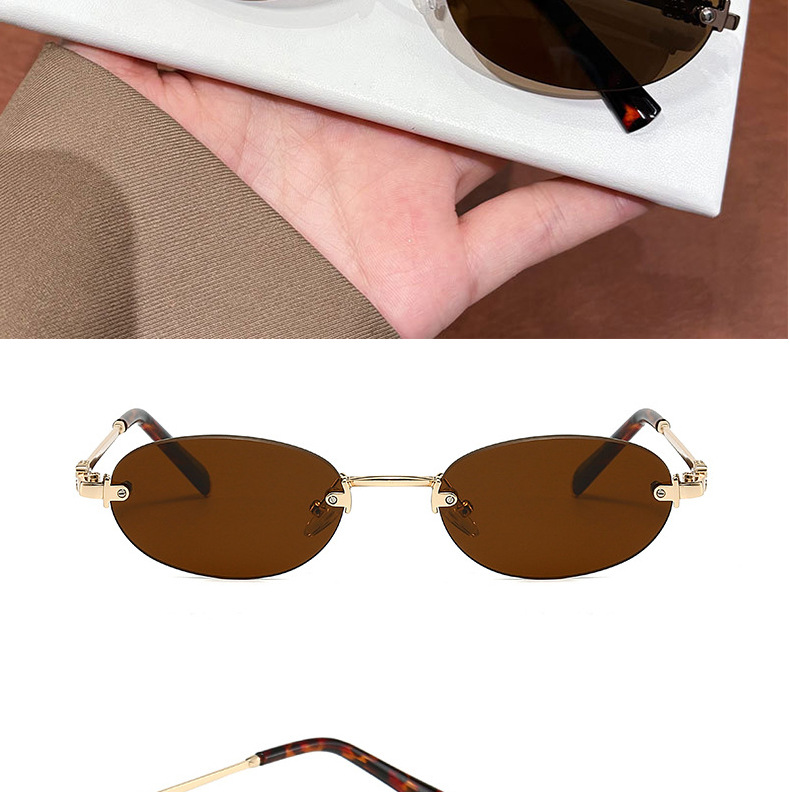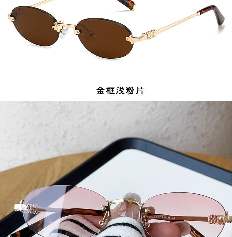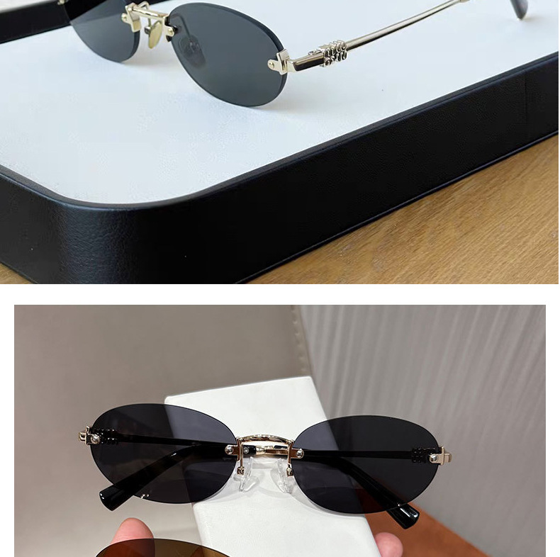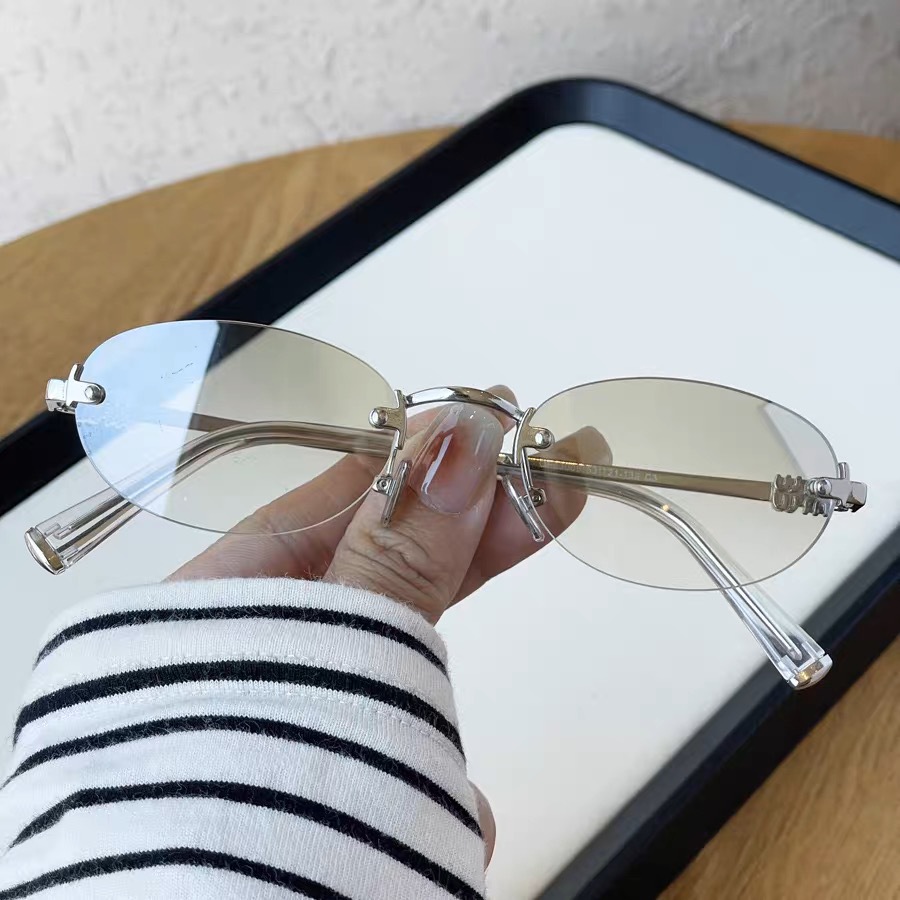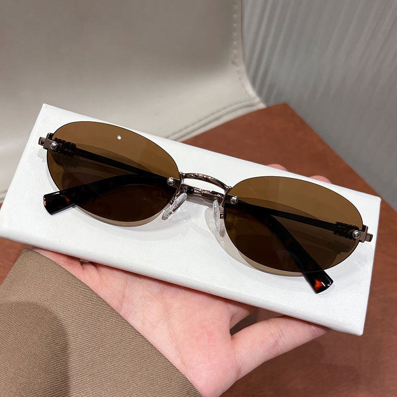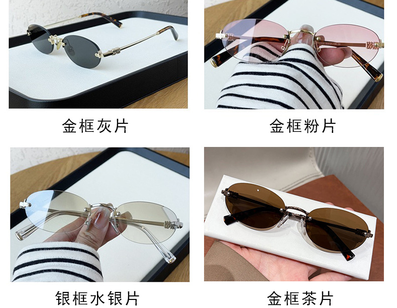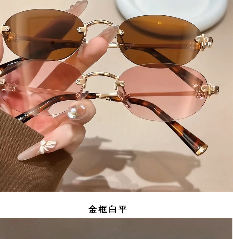 여성용 한국식 새 패션 프레임리스 올드 머니 스타일 선글라스, 여행용 사진 촬영용, 트렌디한 노메이크업 다용도 선글라스스토어 가기