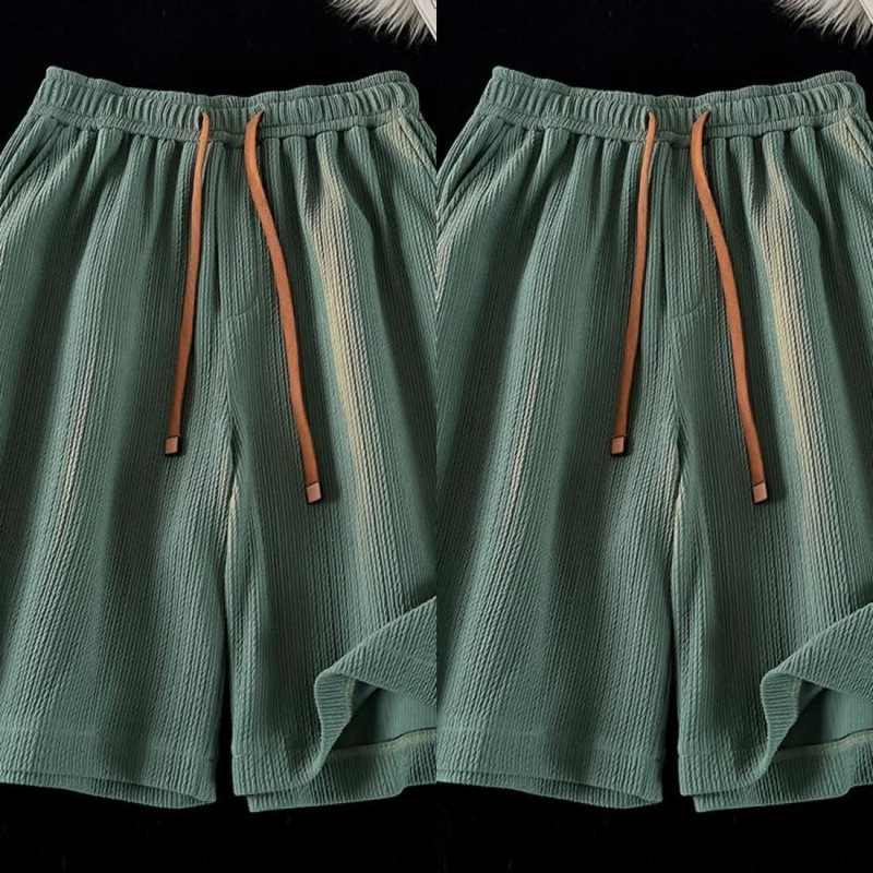 플러스 사이즈 주름진 얼음 실크 속건성 반바지 남성 여름 얇은 바지 비치 바지 루즈 스포츠 캐주얼 중간 길이 바지