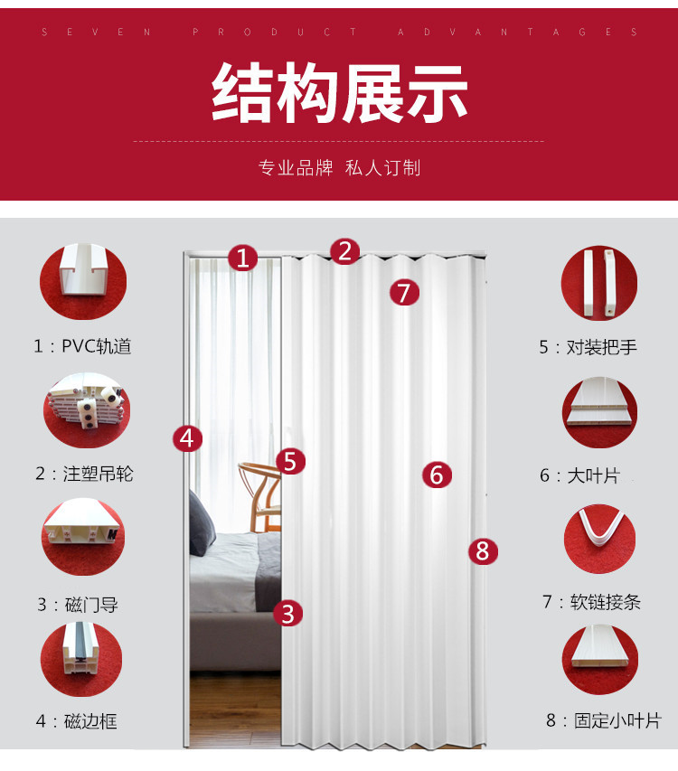 PVC 접이식 문 파티션 거실 상점 슬라이딩 침실 욕실 루버 도어 실내 발코니 주방 도어
