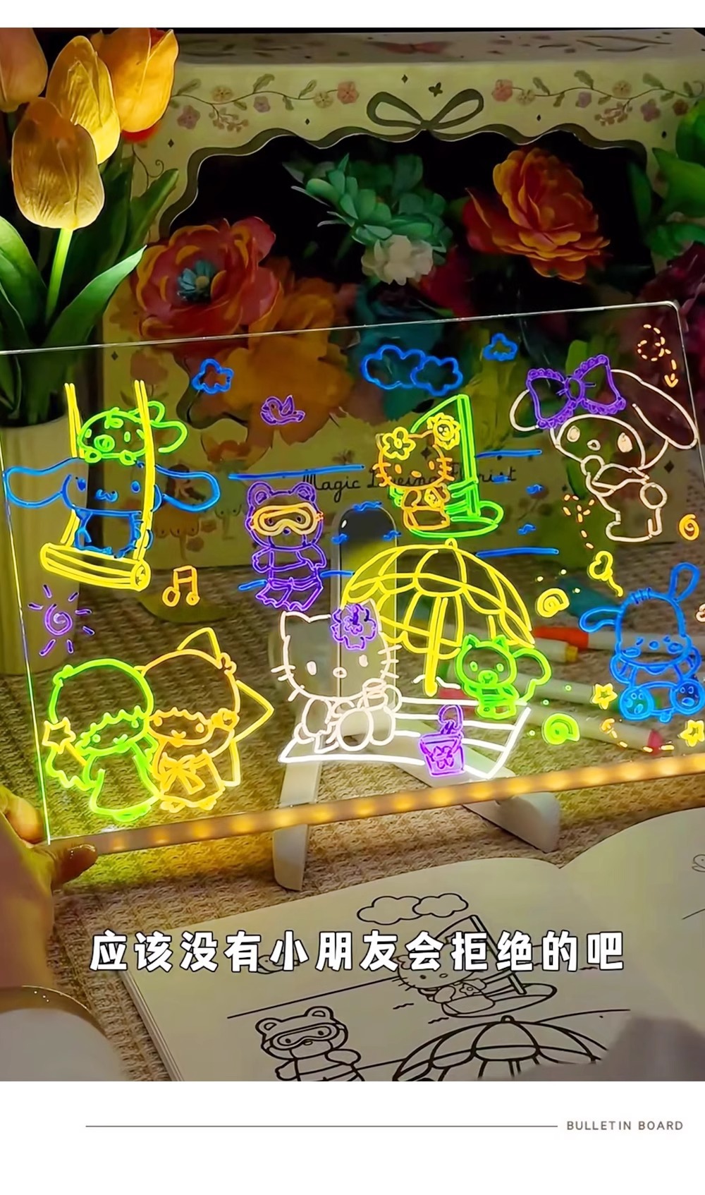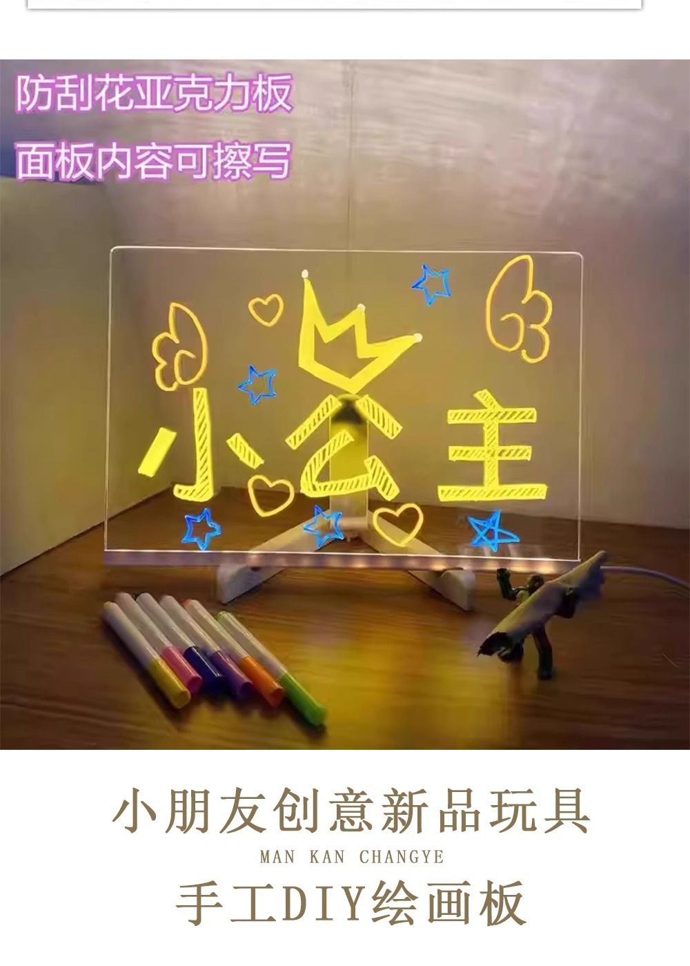 • 중간 크기 20*20CM-야광 화판+스탠드+색펜 5개+천