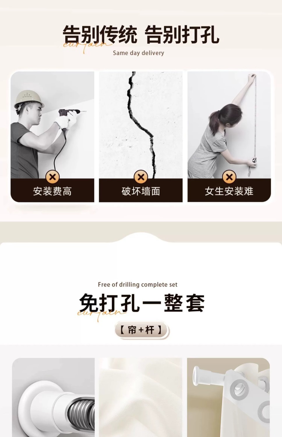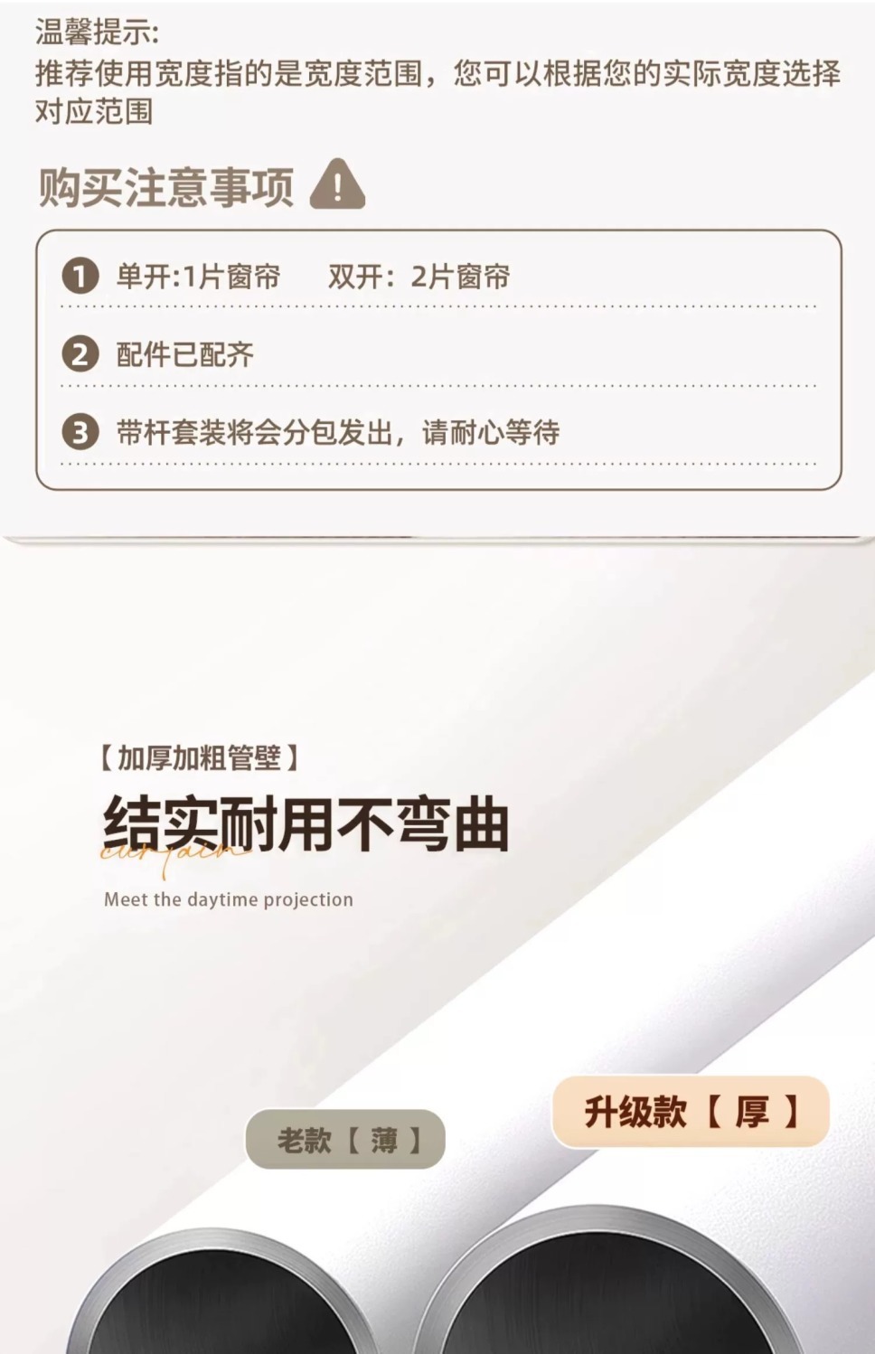 • 적용 가능한 창 너비 3.6-4.1m [커튼 높이 2.7m] 2개 - 텔레스코픽 로드 포함