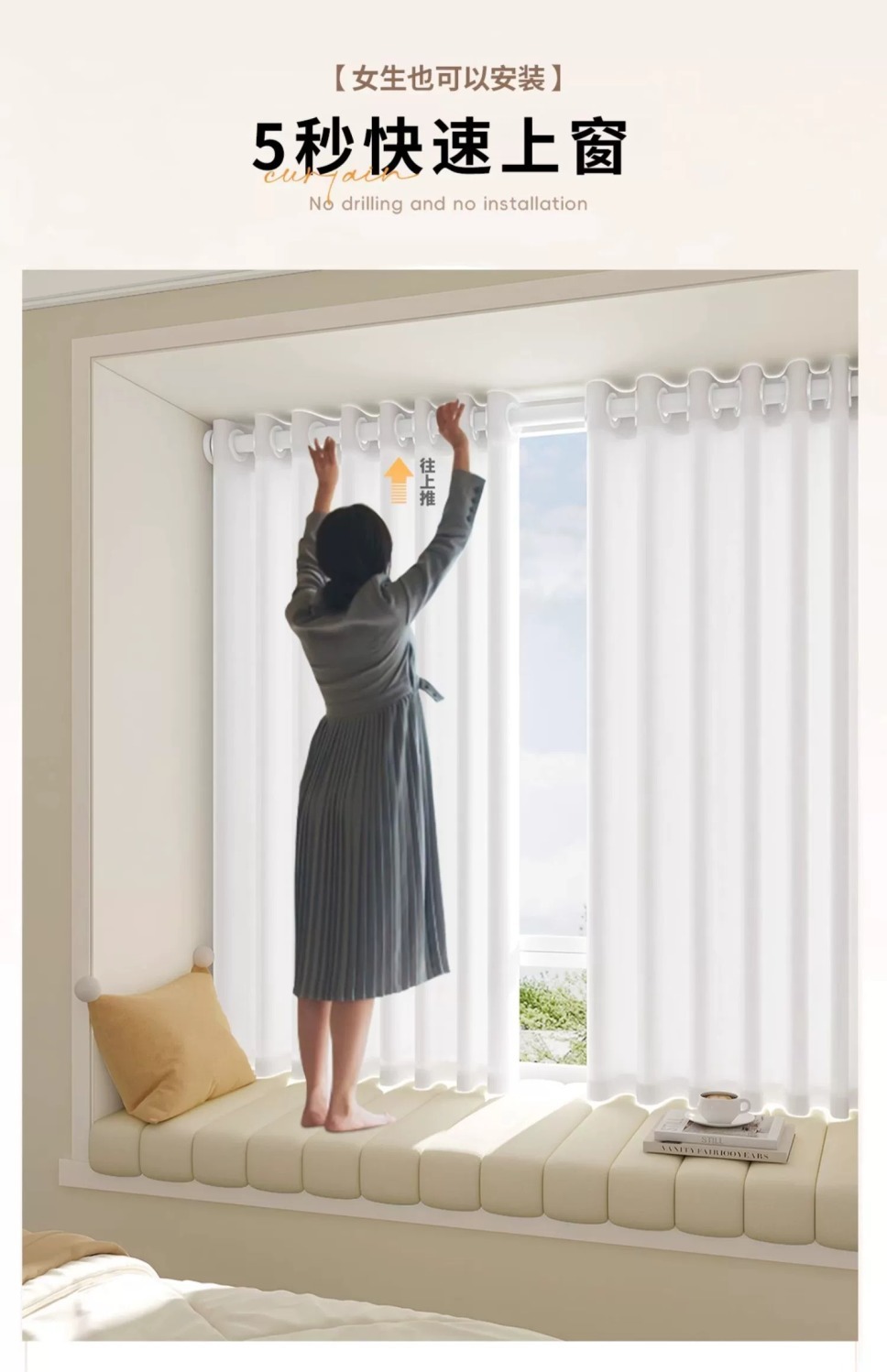 • 적용 가능한 창 너비 2.6-3.1m [커튼 높이 2.7m] 2개 - 텔레스코픽 막대 포함