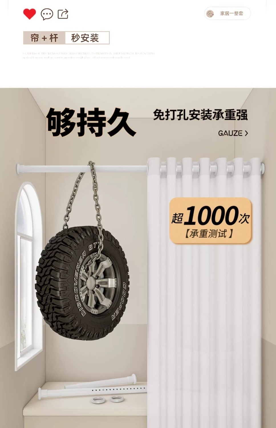• 적용 가능한 창 너비 0.7-1.1m [커튼 높이 2.0m] 1개 - 텔레스코픽 로드 포함