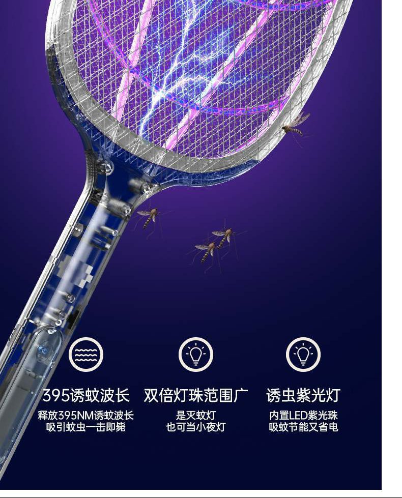• 럭셔리 플래그십 모델 [8등 보라색 빛 모기 유인 + 확대된 라켓 표면 + 베이스]