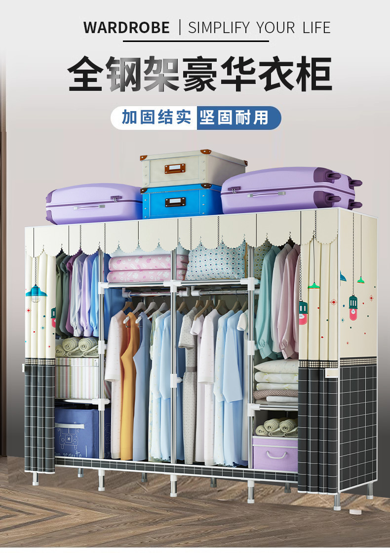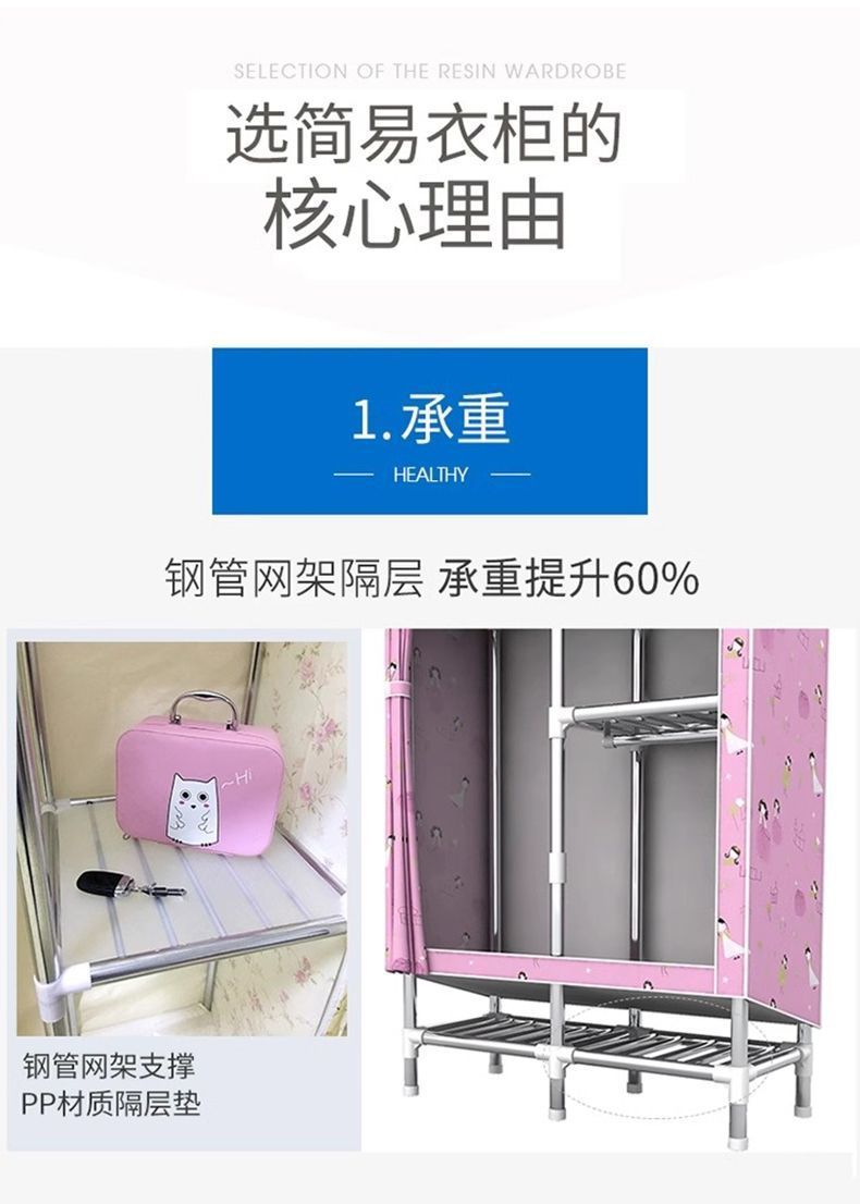 옷장 간단한 가정용 침실 내구성 튜브 두꺼운 강화 그룹 고급 천 옷장 국경 간 공장 제품스토어 가기