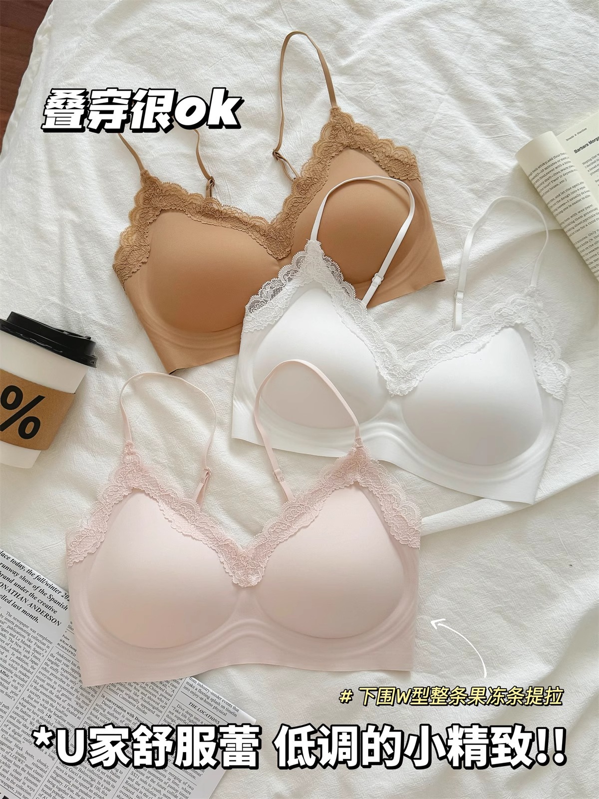 가슴이 작은 여성을 위한 심리스 레이스 속옷, 푸쉬업, 아름다운 등, 편안한 푸쉬업, 와이어 프리, 얇은 어깨끈, 구름같은 얇은 브라