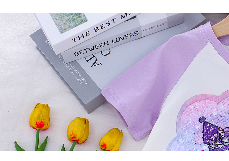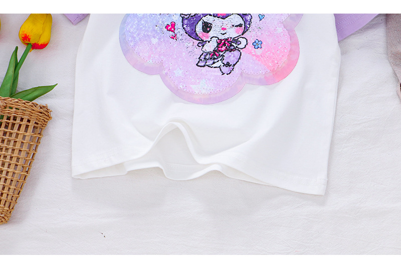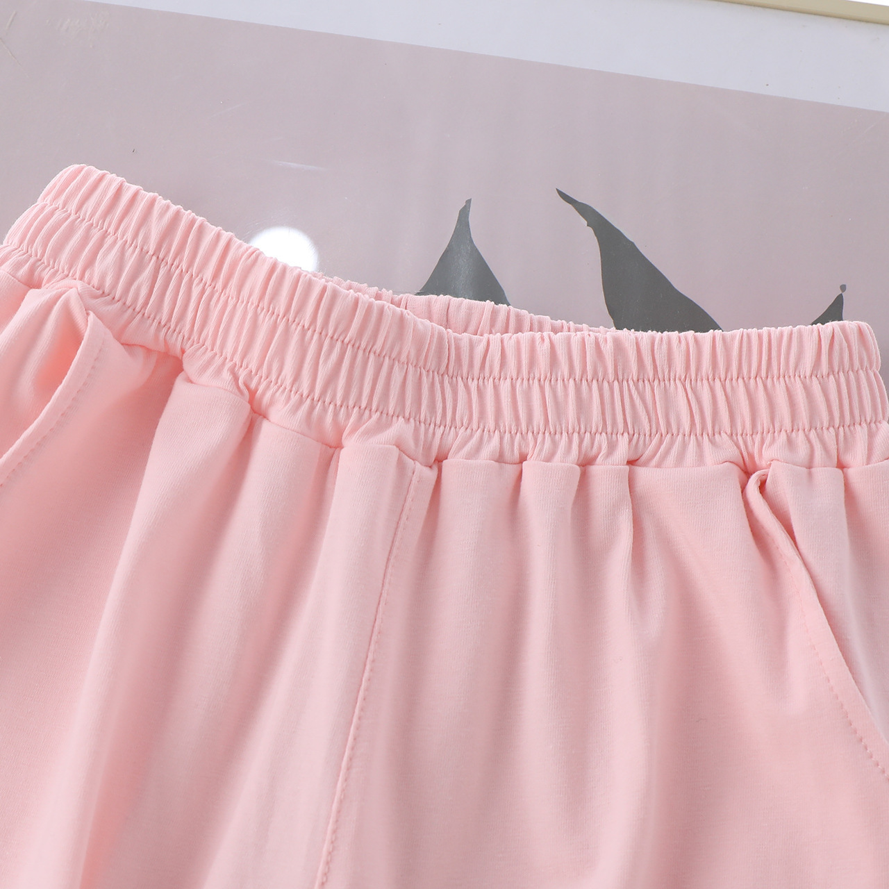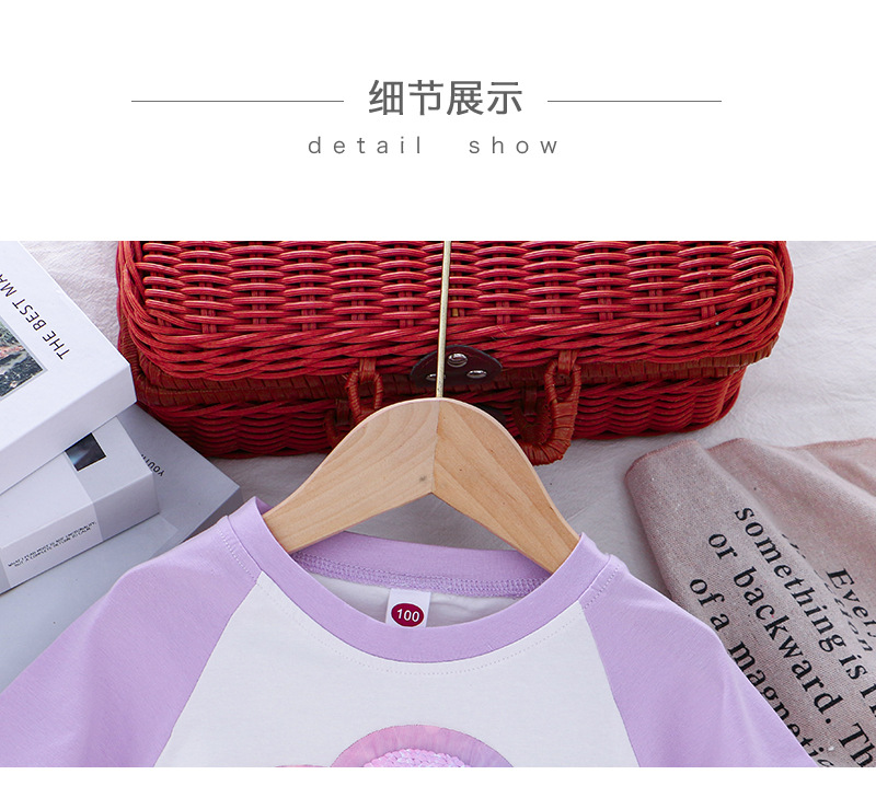 여아 정장, 아동용 대비색 래글런 반팔 티셔츠, 여아 멜로디 컬러 체인징 탑, 여름 모기 방지 바지 세트스토어 가기