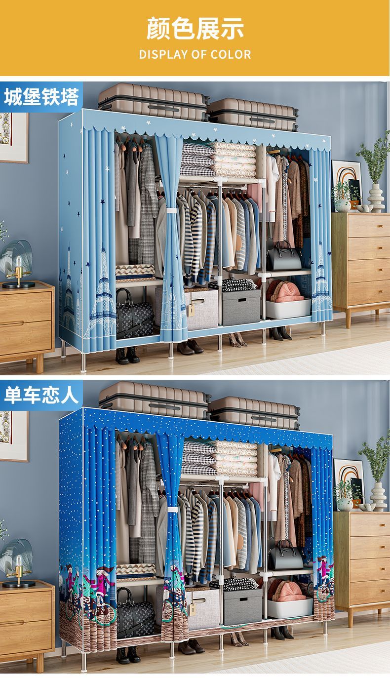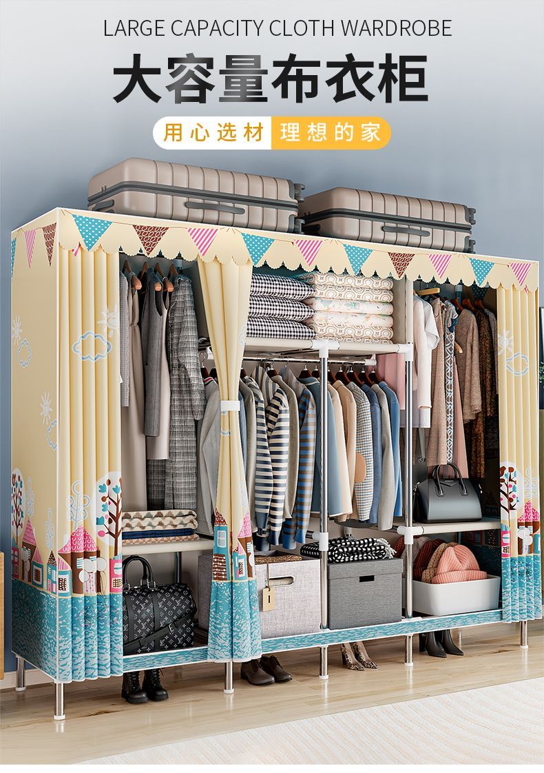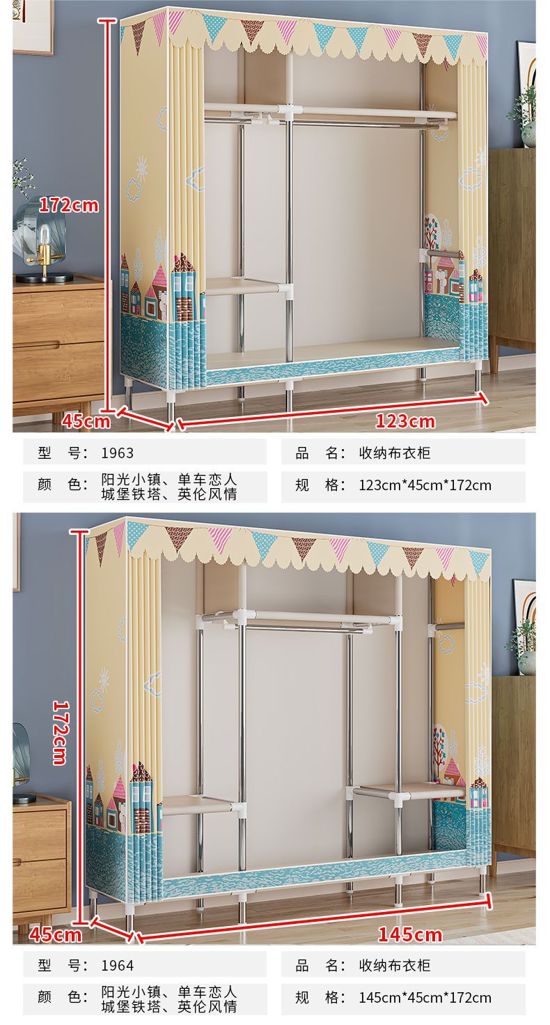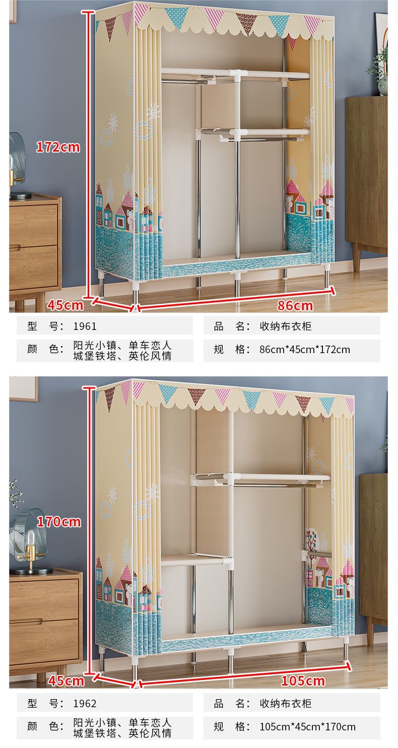 간단한 옷장, 가정용 침실 천 옷장, 임대 주택, 튼튼하고 내구성이 뛰어난 조립식 옷걸이, 소형 캐비닛스토어 가기