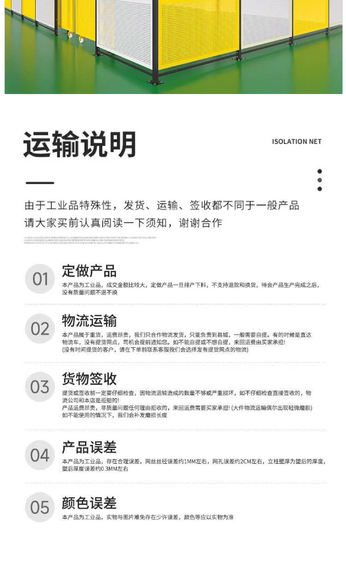 Northeast Workshop 창고 격리망 제조업체는 자동화 장비 안전 건설 현장을 사용자 정의할 수 있습니다. 두꺼운 격리 울타리