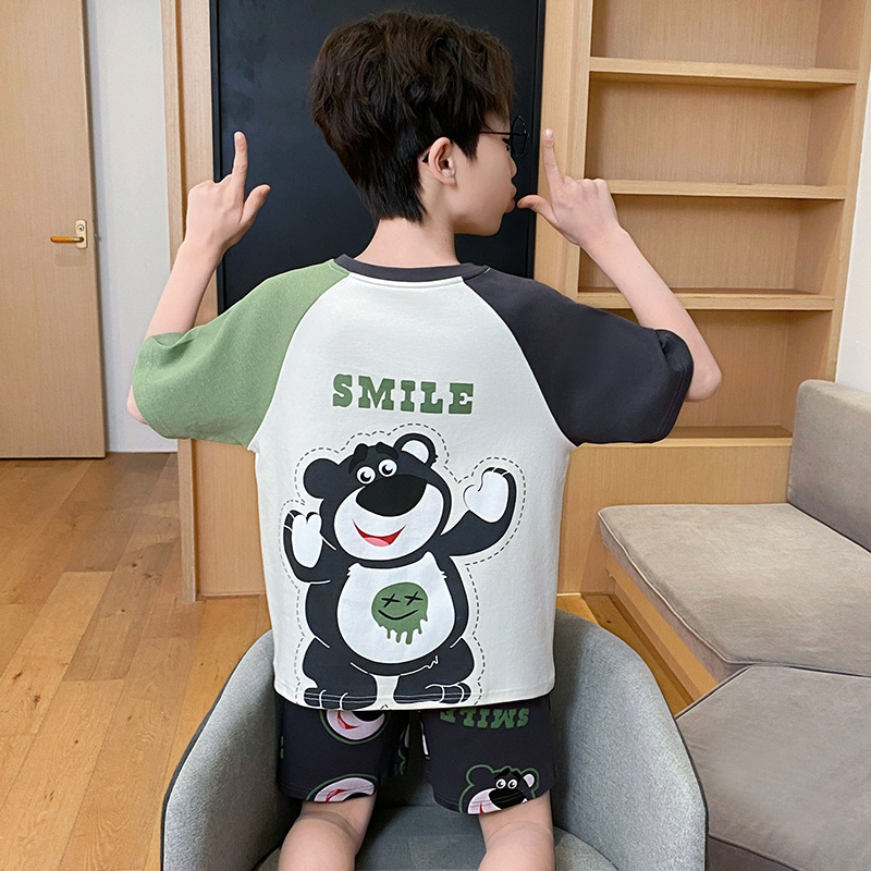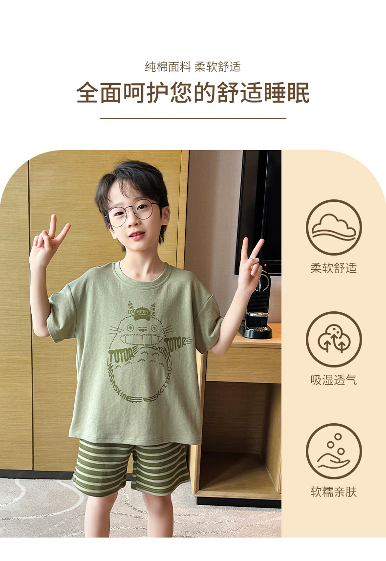 소년 잠옷 여름 순면 반팔 얇은 어린이 소년 2025 새로운 스타일 청소년 중학생 면 100%스토어 가기