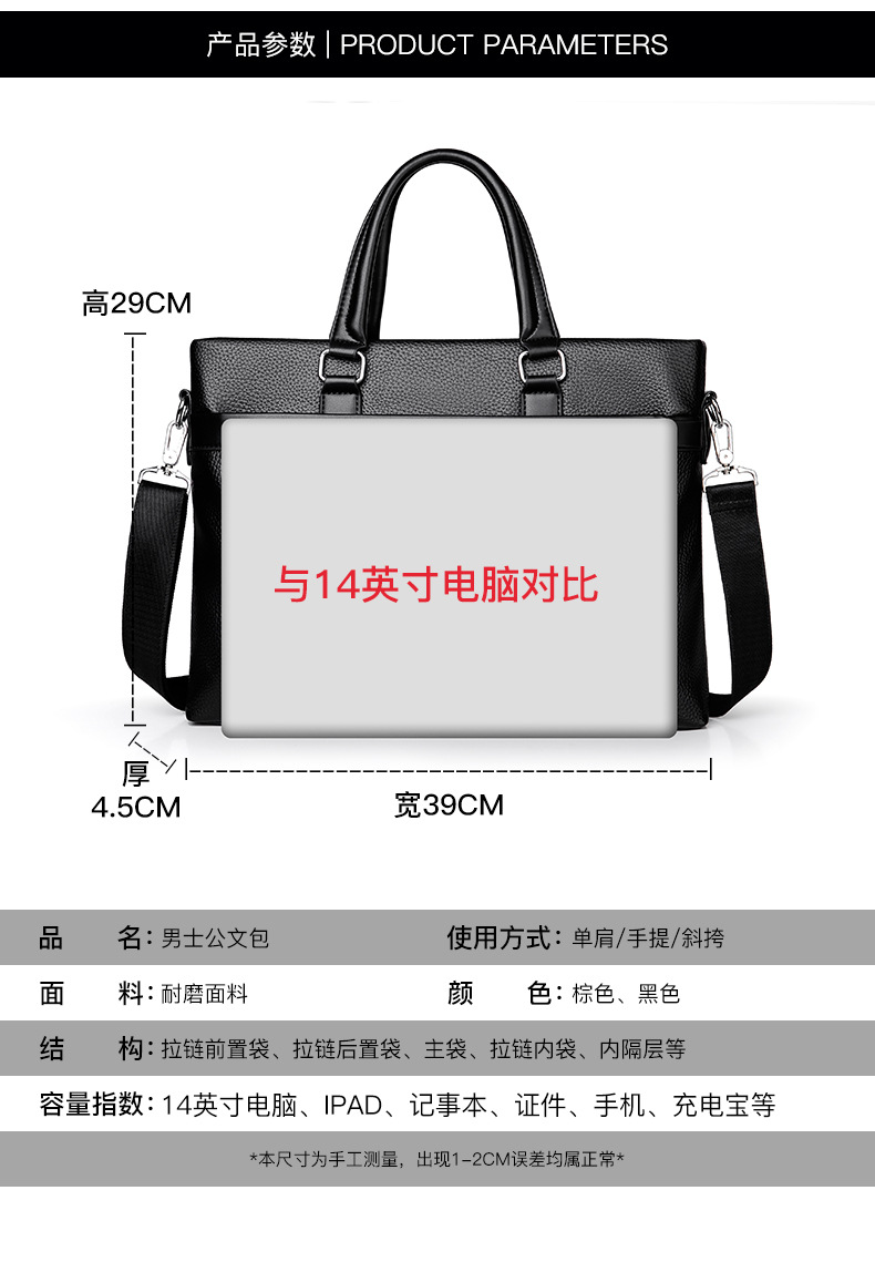 새로운 남성 핸드백, 비즈니스 서류 가방, 캐주얼 가방, 어깨 크로스 바디 백, 천연 가죽 질감 컴퓨터 가방, 도매 트렌드