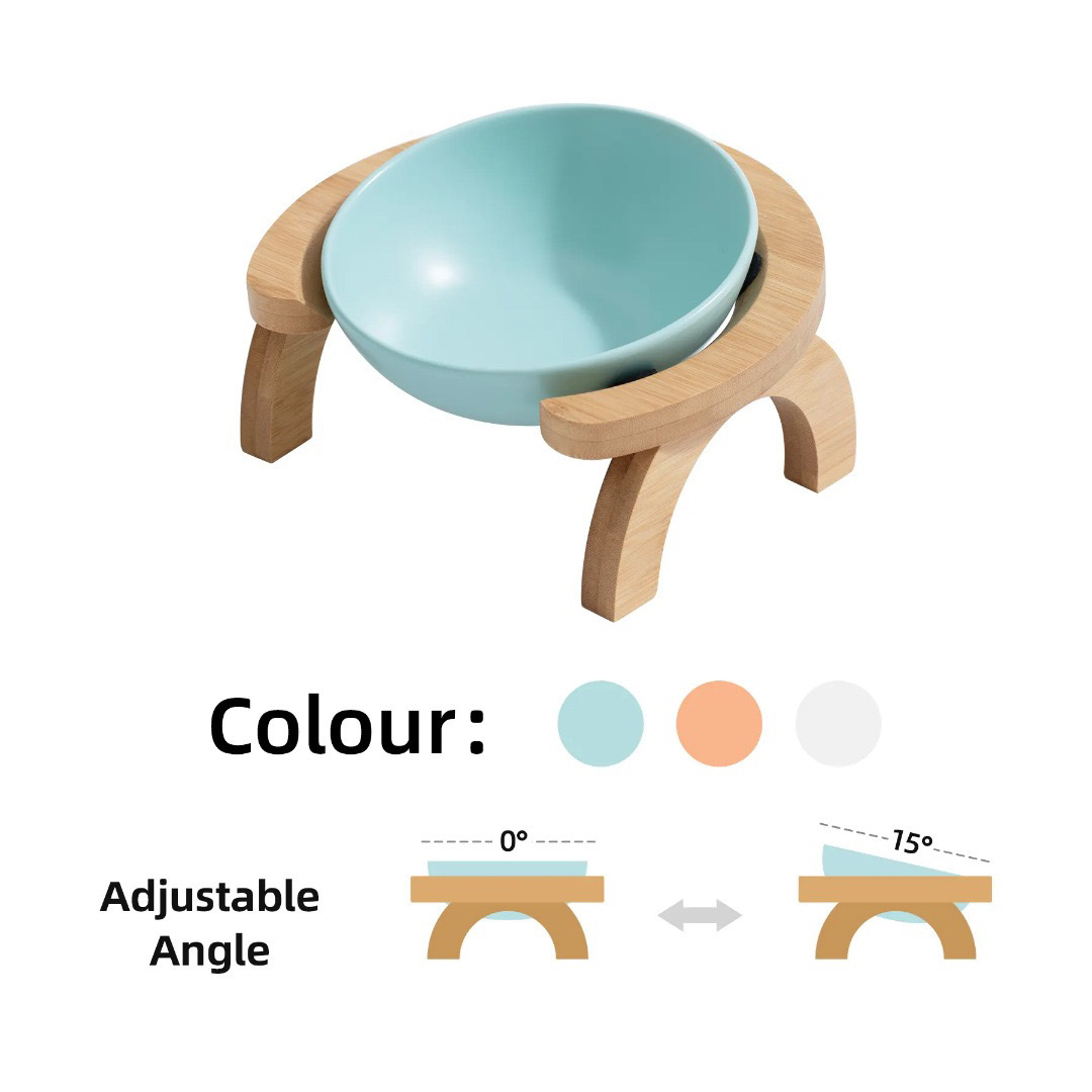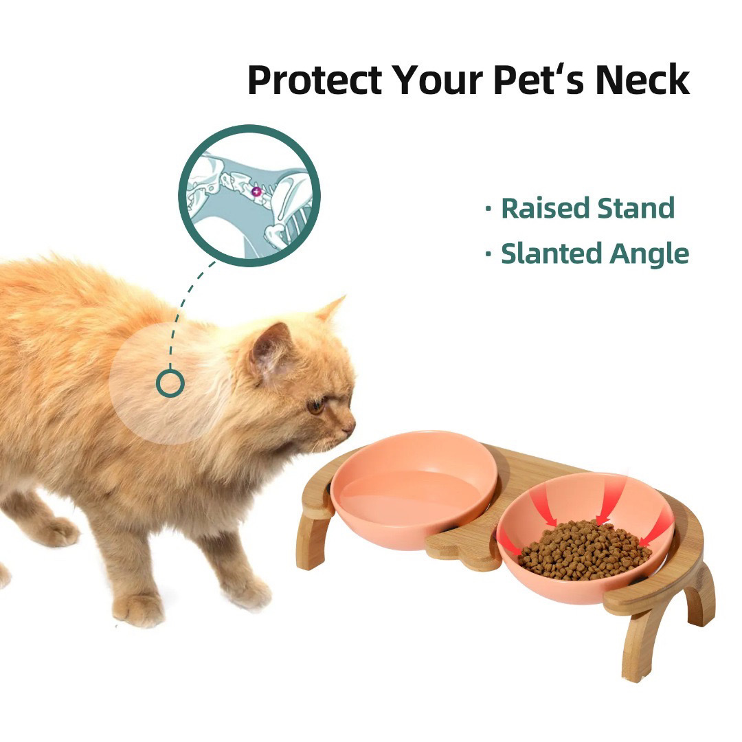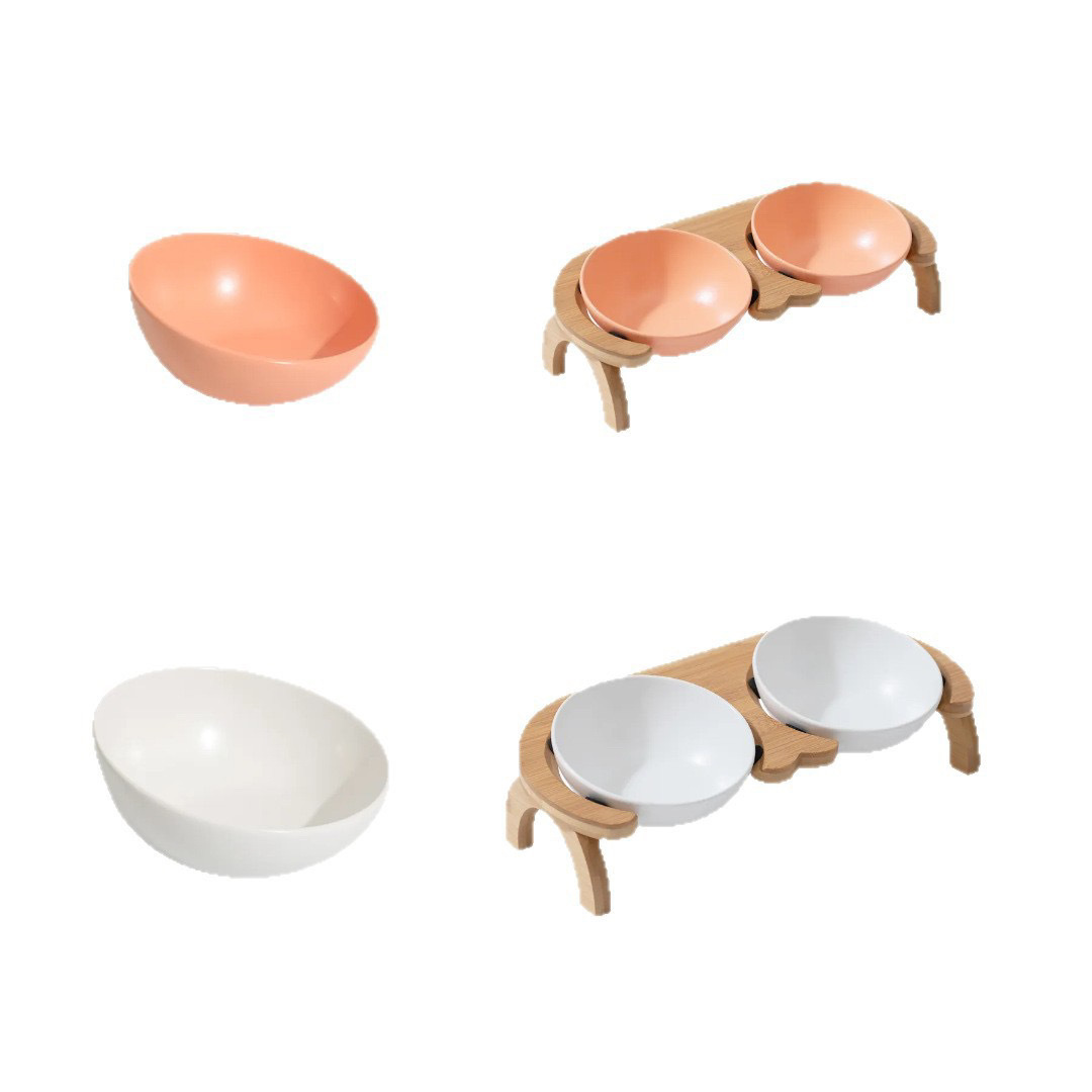 단일 및 이중 그릇을 갖춘 크로스보더 목재 애완동물 그릇 랙, 애완동물 식기 높이 조절기, 경사진 입, 목 보호대, 사료 그릇, 고양이 그릇 랙, 피더스토어 가기