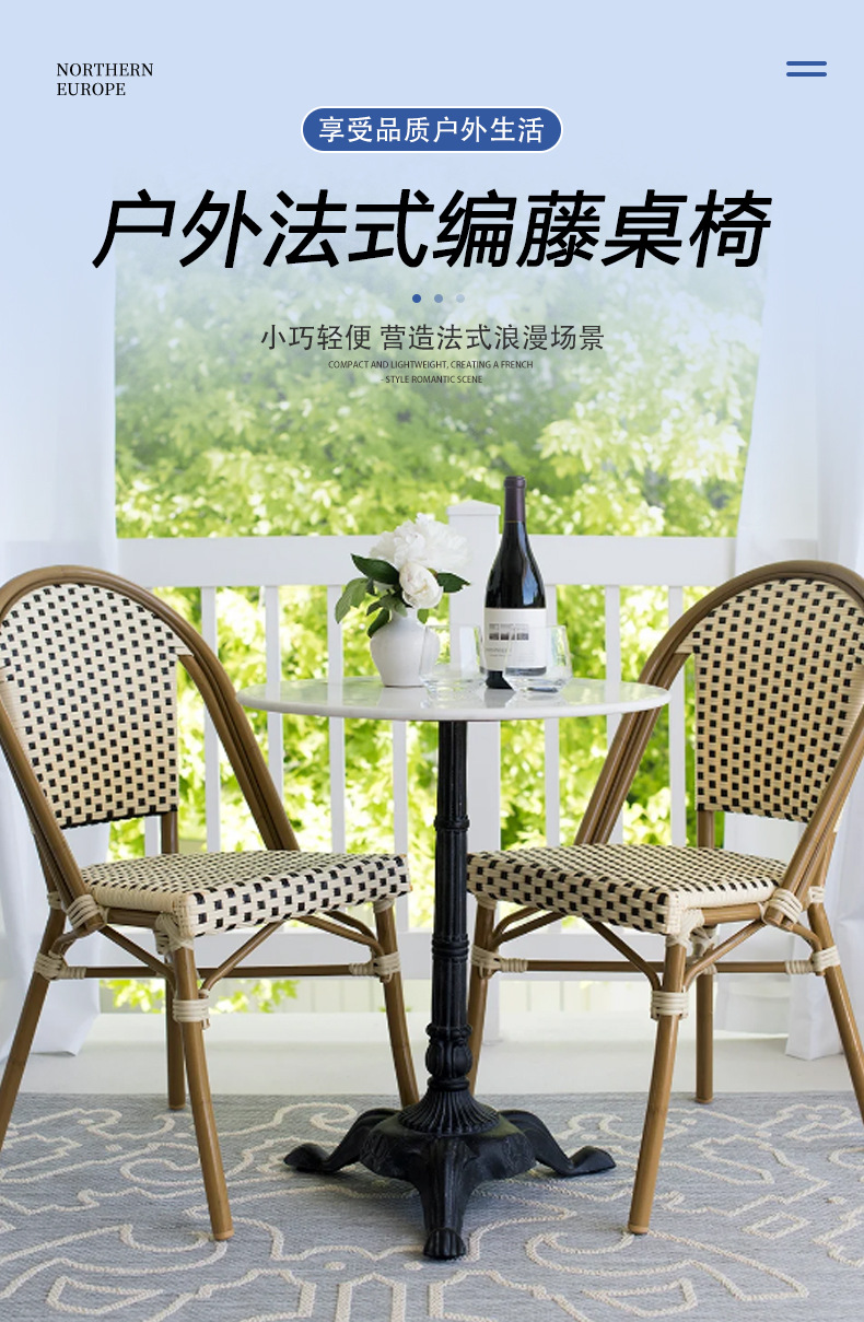 야외 테이블과 의자, 안뜰 발코니 정원 의자, 야외 레저 등나무 의자, 상업 거리 카페, 밀크티 가게 식탁과 의자