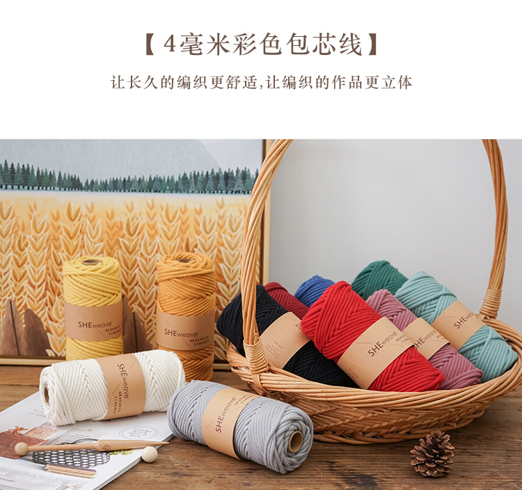 편안한 가정용 면끈 4mm 코어가 있는 면끈 실 손뜨개질 DIY 수공예 태피스트리 면실 인스 스타일스토어 가기