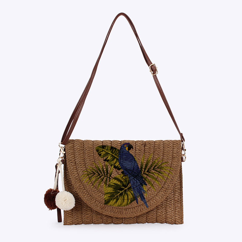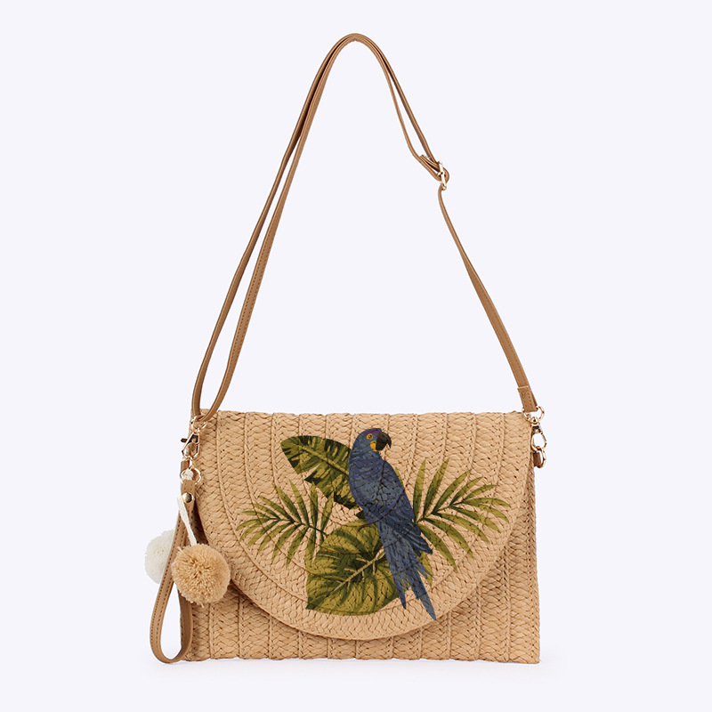 크로스보더 스팟 프린트 앵무새 우븐 밀짚 가방 숄더 크로스백 통근 봉투 클러치 백은 크로스바디로 사용할 수 있습니다.