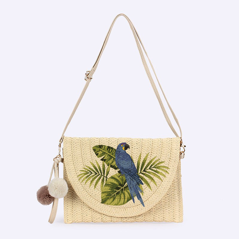 크로스보더 스팟 프린트 앵무새 우븐 밀짚 가방 숄더 크로스백 통근 봉투 클러치 백은 크로스바디로 사용할 수 있습니다.스토어 가기