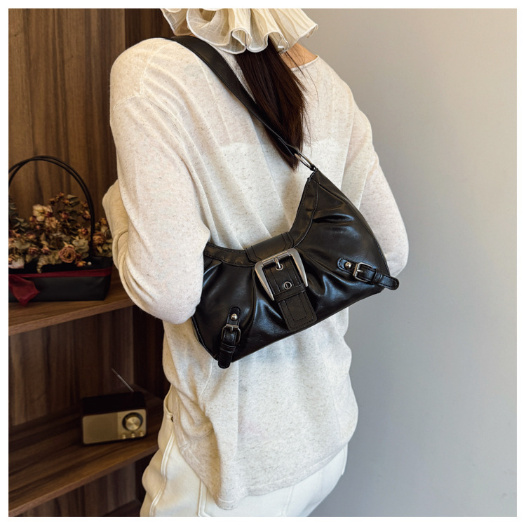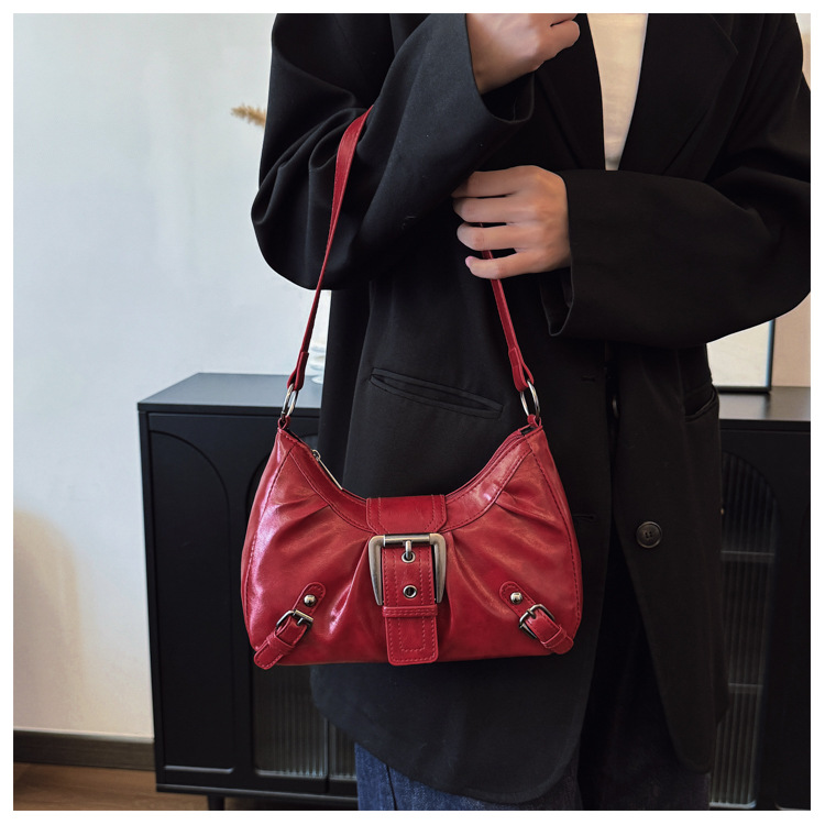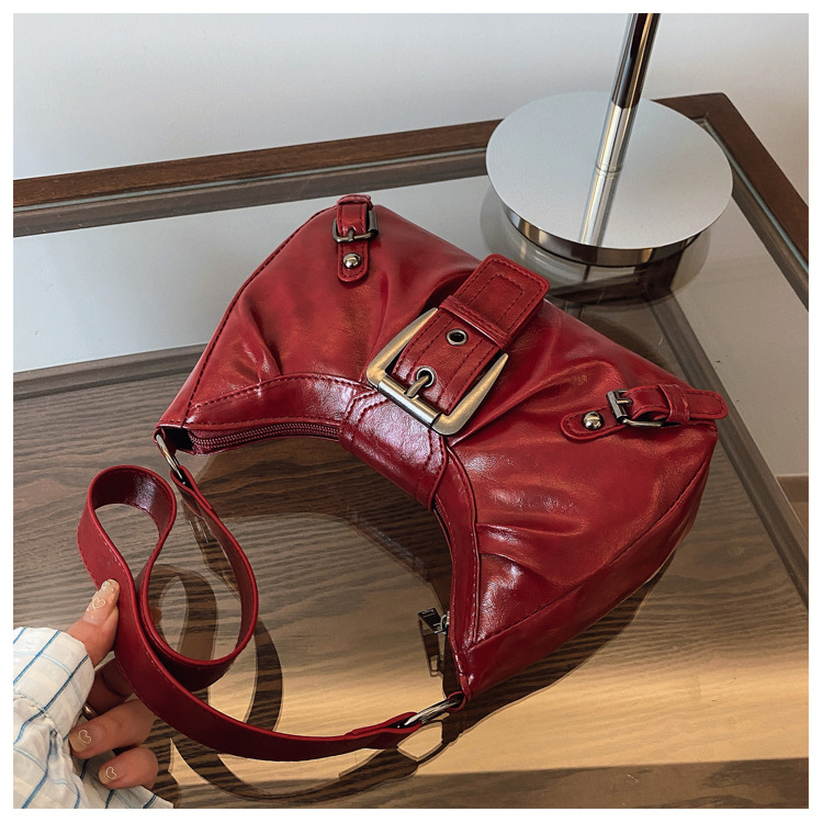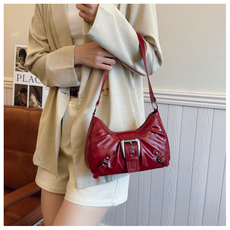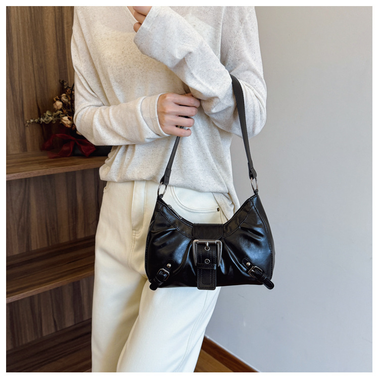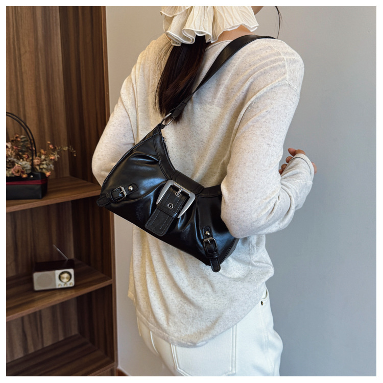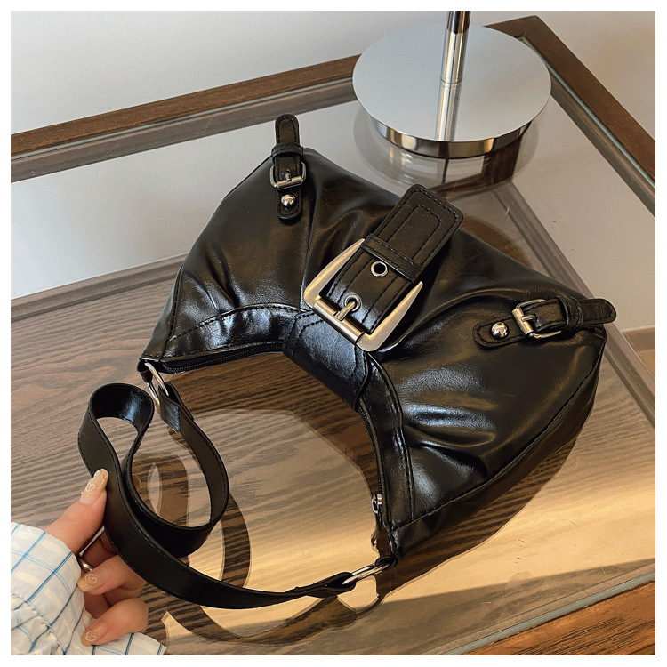 여성을위한 크로스 보더 대용량 주름 겨드랑이 가방 2025 새로운 복고풍 통근 기질 오토바이 오래된 스타일 숄더백