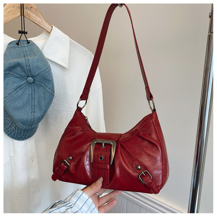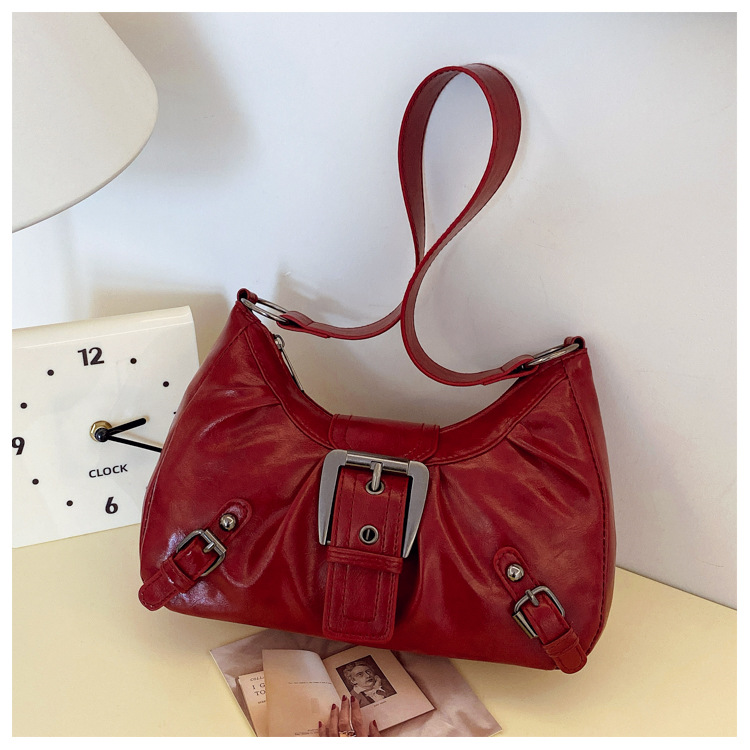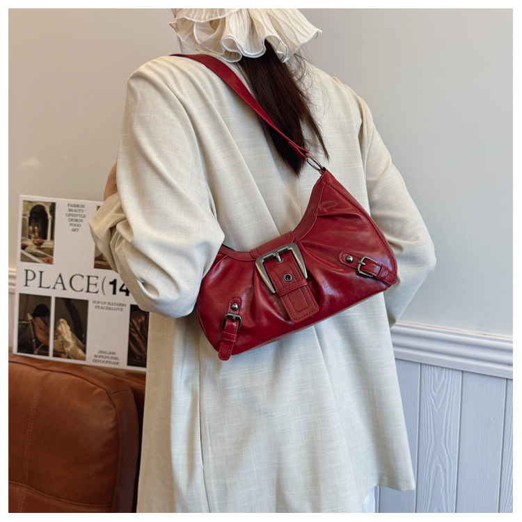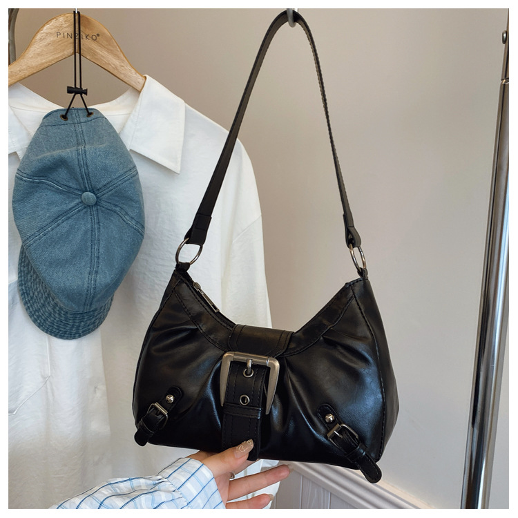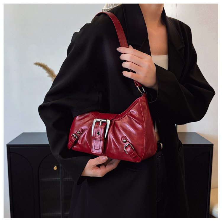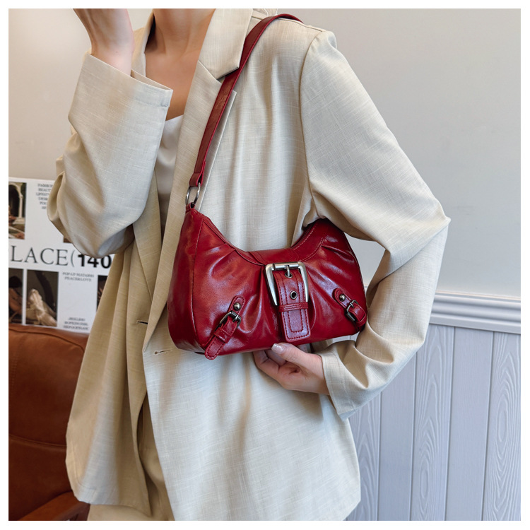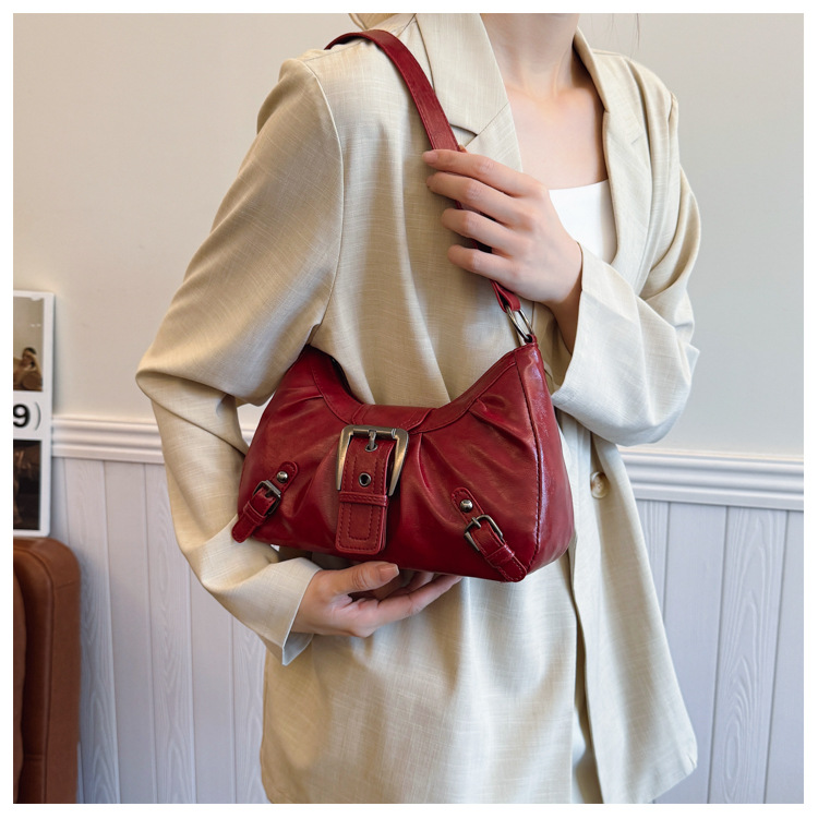 여성을위한 크로스 보더 대용량 주름 겨드랑이 가방 2025 새로운 복고풍 통근 기질 오토바이 오래된 스타일 숄더백