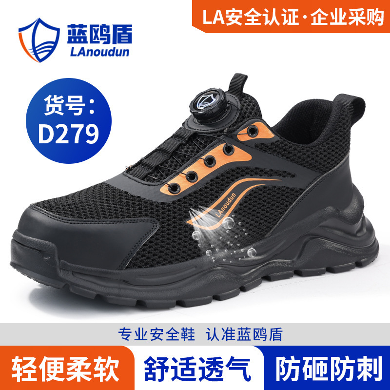 Blue Gull Shield 노동 보호 신발, 통기성, 충격 방지 및 펑크 방지 강철 발가락 내마모성 신발, 여름 안전 경량 회전 버클 작업 신발스토어 가기